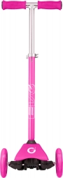 Velká přední kolečka a nízký nášlap poskytují jistotu a stabilitu na rovných površích. Gumové rukojeti příjemně sedí v ruce, zadní blatníková brzda spolehlivě zastaví a ložiska ABEC-5 se postarají o tichou, plynulou jízdu. Výškové nastavení T-bar řídítek snadno přizpůsobíte aktuální výšce dítěte.