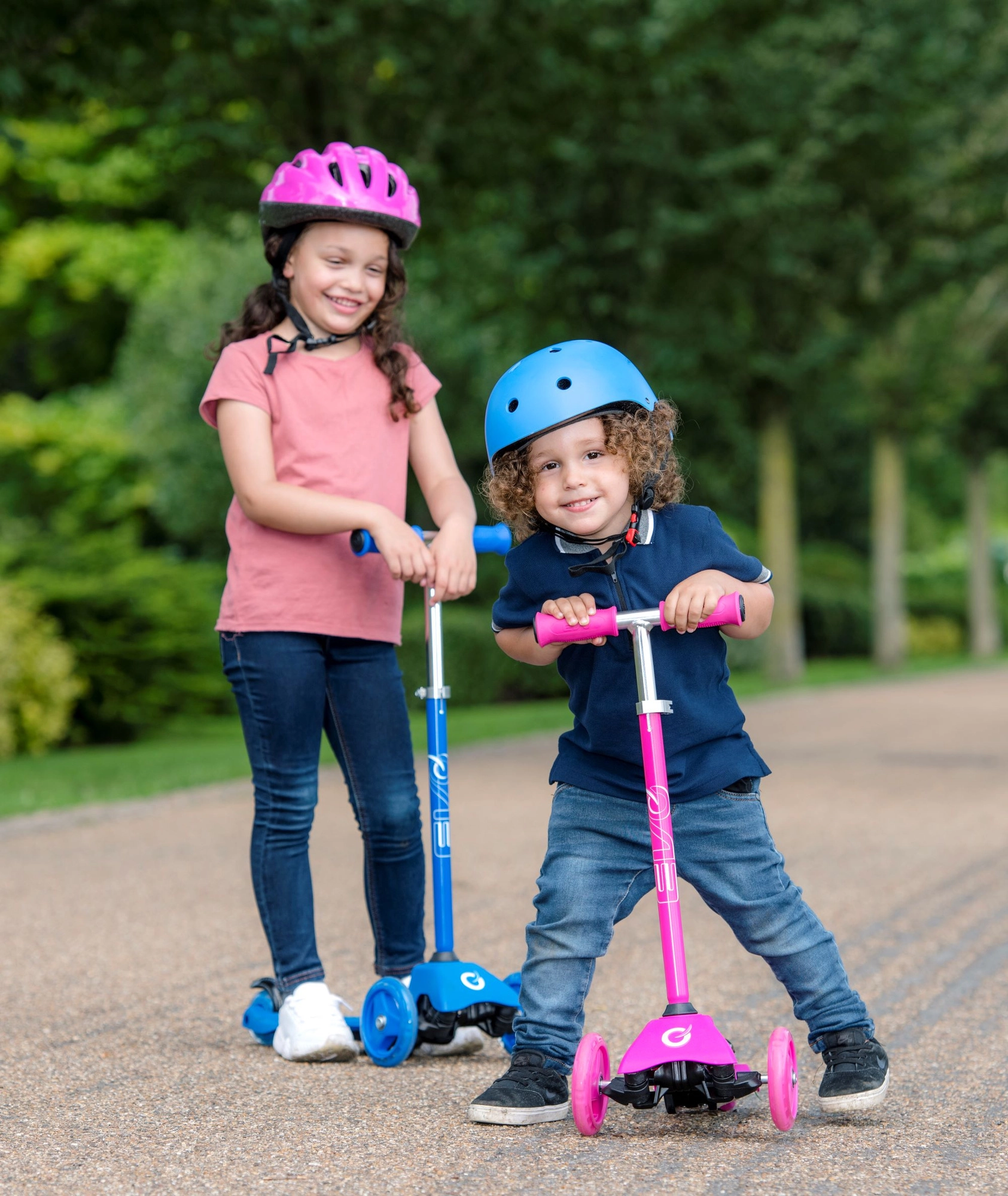 Dvě velká přední kola a mechanika lean-to-steer zajišťují jistotu v zatáčkách, učí rovnováze a podporují správnou koordinaci pohybů.