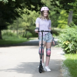 Koloběžka EVO Street Rider 200 je ideální volbou pro městské ježdění i volnočasové projížďky. Díky velkým 200 mm kolům s ložisky ABEC-7 se rozjíždí lehce a jede plynule, odpružení tlumí nerovnosti a skládací konstrukce zajišťuje snadné přenášení i skladování. Nastavitelná výška řídítek se přizpůsobí postavě jezdce, takže koloběžka poroste společně s dítětem i teenem.