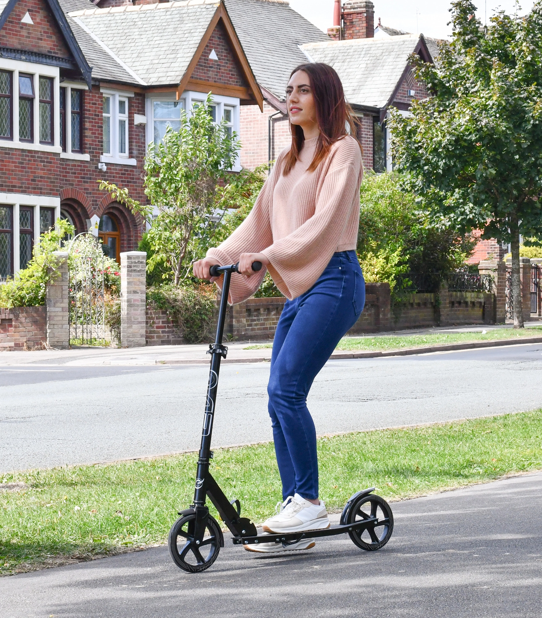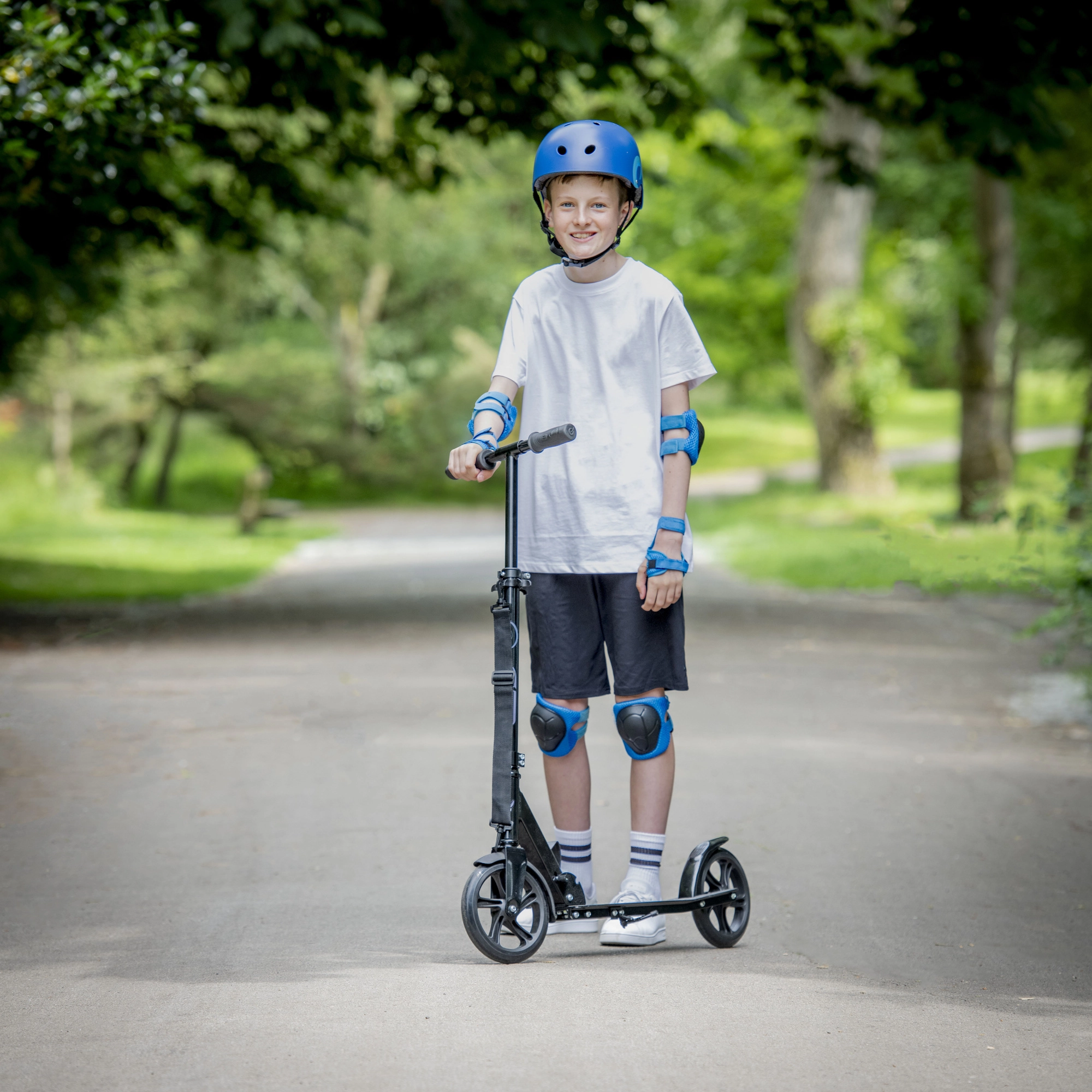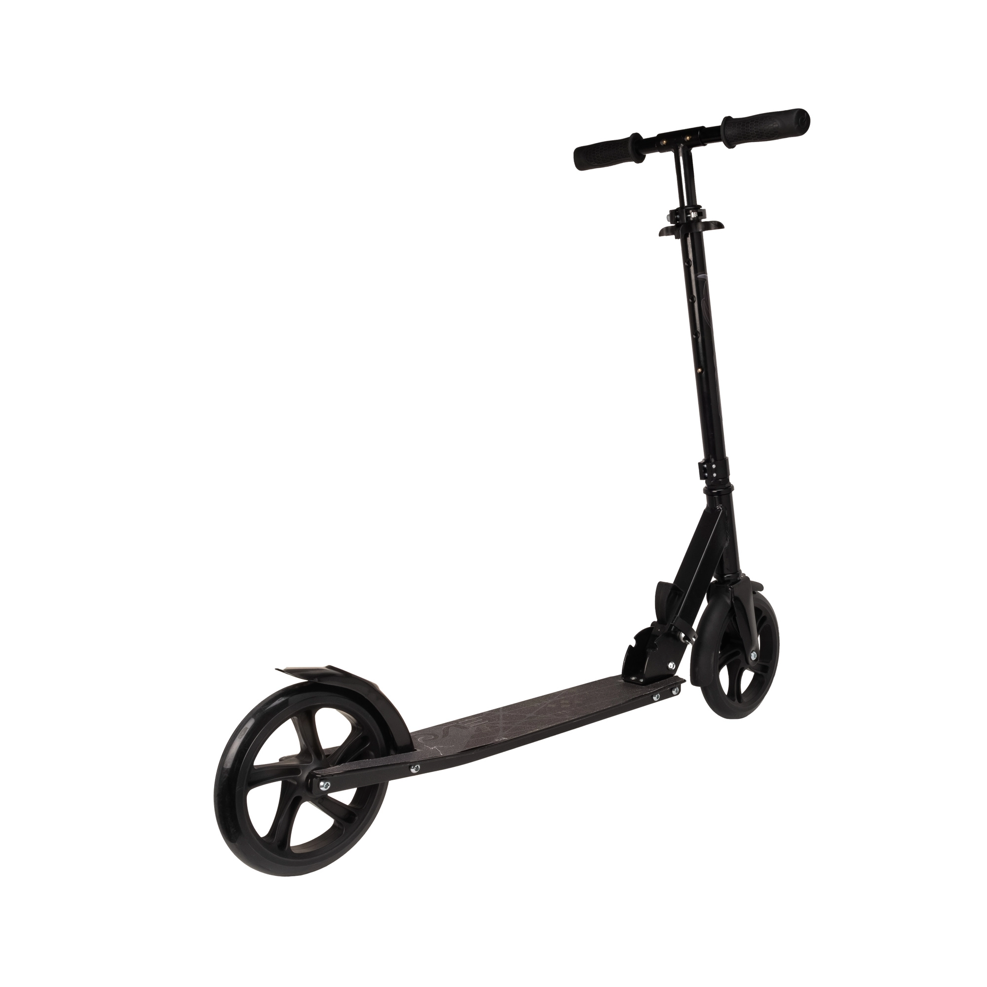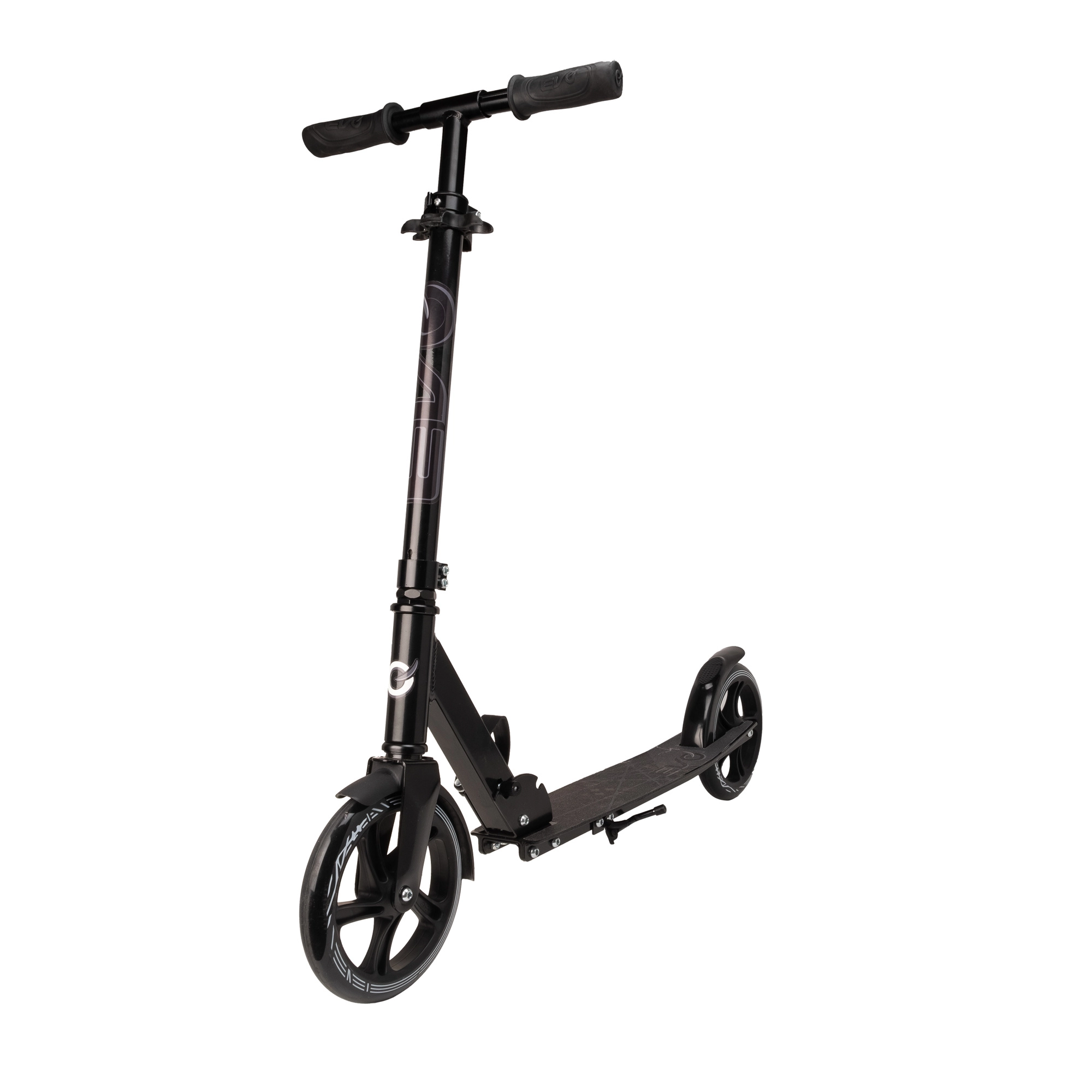 Odolný rám v univerzální černé barvě doplňuje zadní blatník, který slouží také jako nožní brzda pro rychlé a bezpečné zastavení. Díky skládací konstrukci a ramennímu popruhu je přenášení i skladování maximálně pohodlné – doma, ve škole i na cestách.