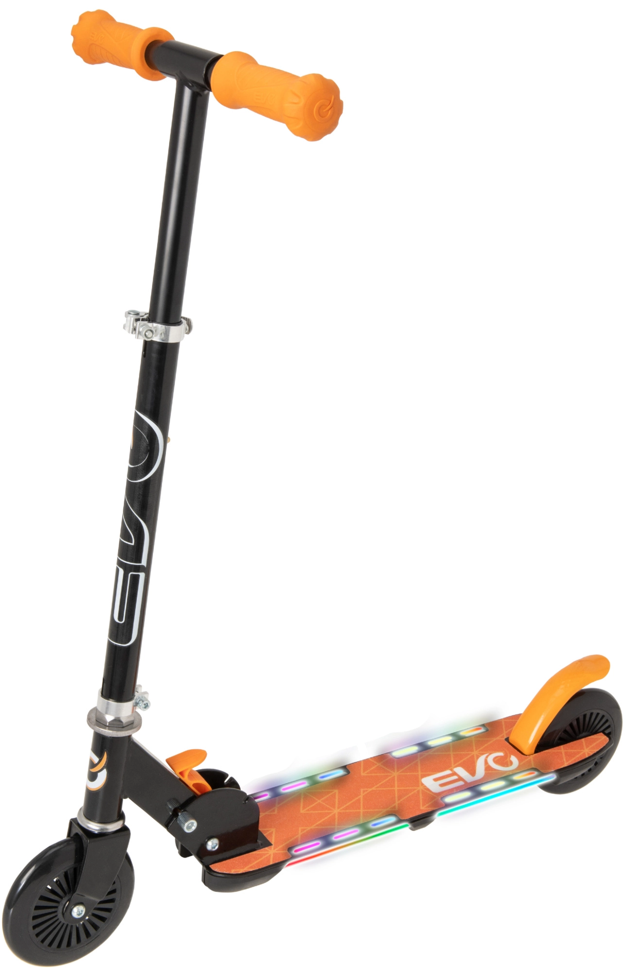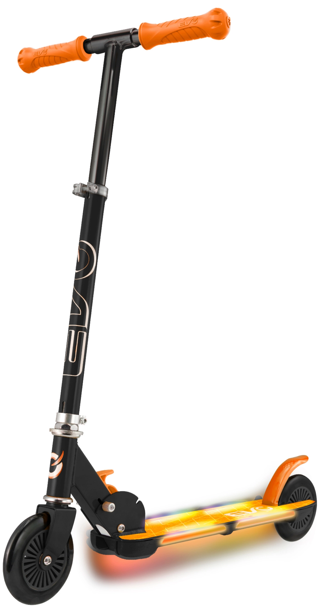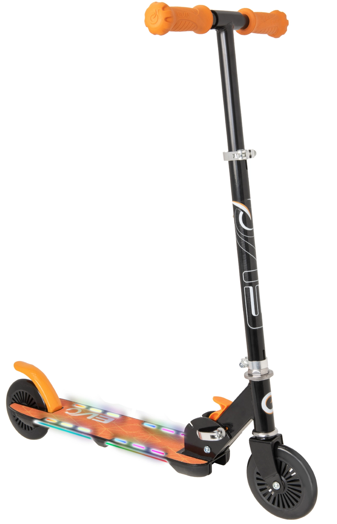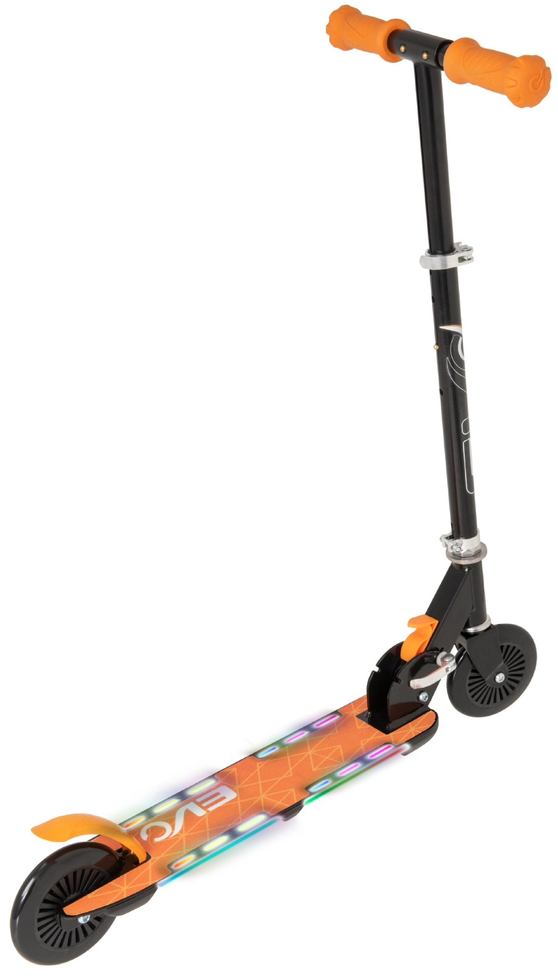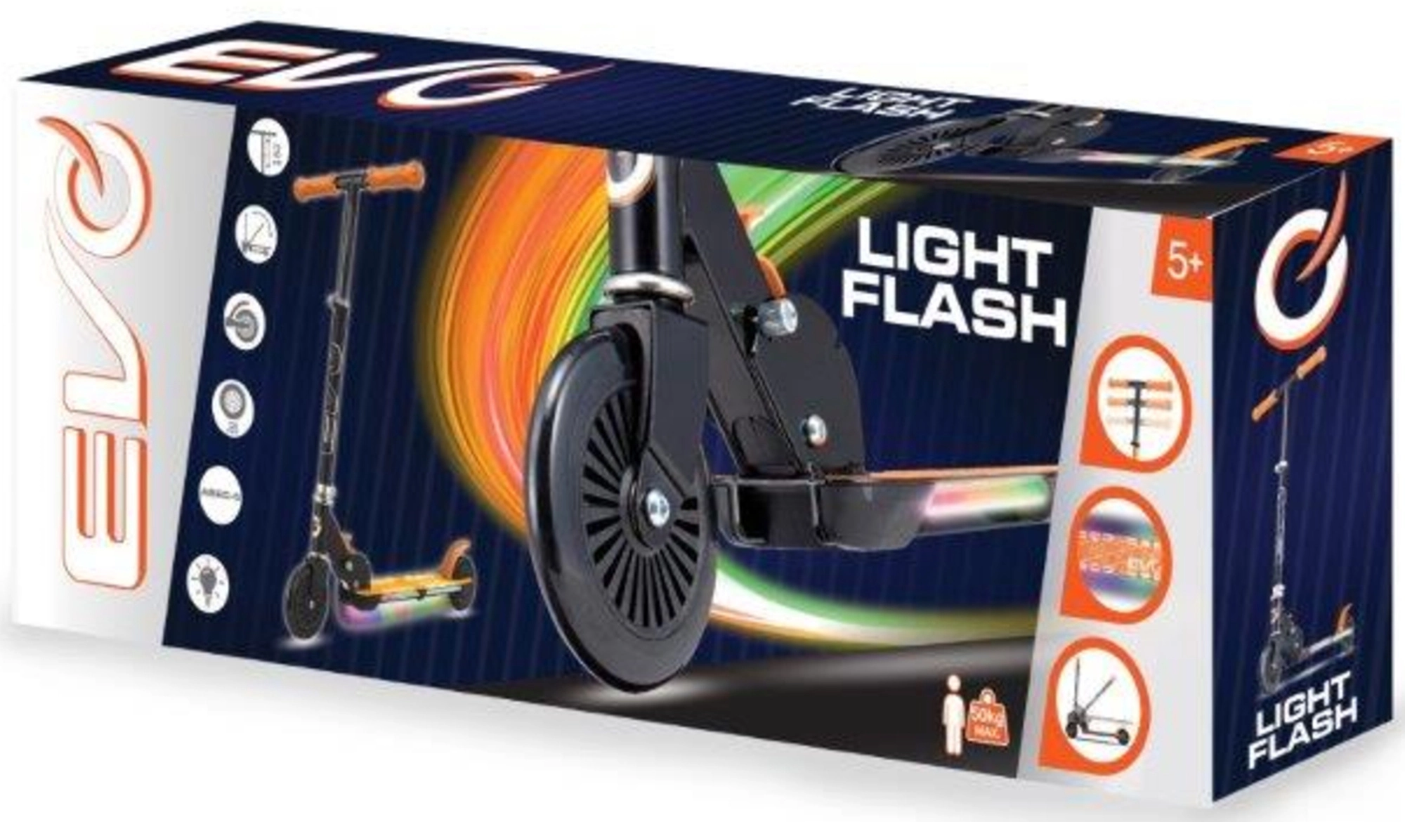 Koloběžka EVO Light Flash je skvělá volba pro malé jezdce, kteří chtějí styl, bezpečí i zábavu. Podesta s barevným LED osvětlením zvyšuje viditelnost a dodává jízdě atraktivní efekt, zatímco lehká skládací konstrukce usnadňuje uložení a převoz. Nastavitelná výška řídítek (cca 72–82 cm) zajistí ideální ergonomii pro různé výšky dětí.