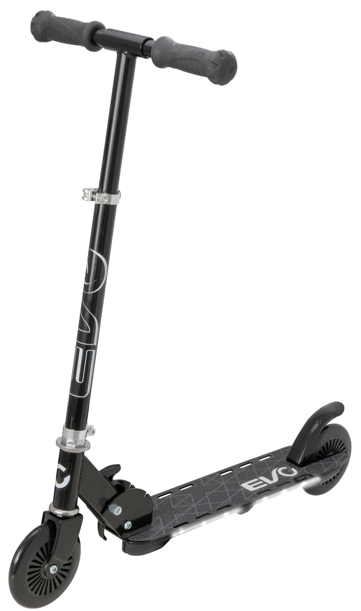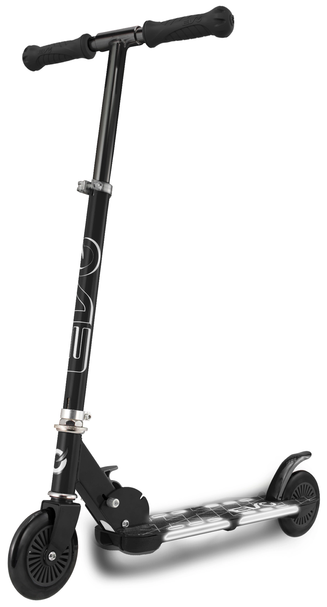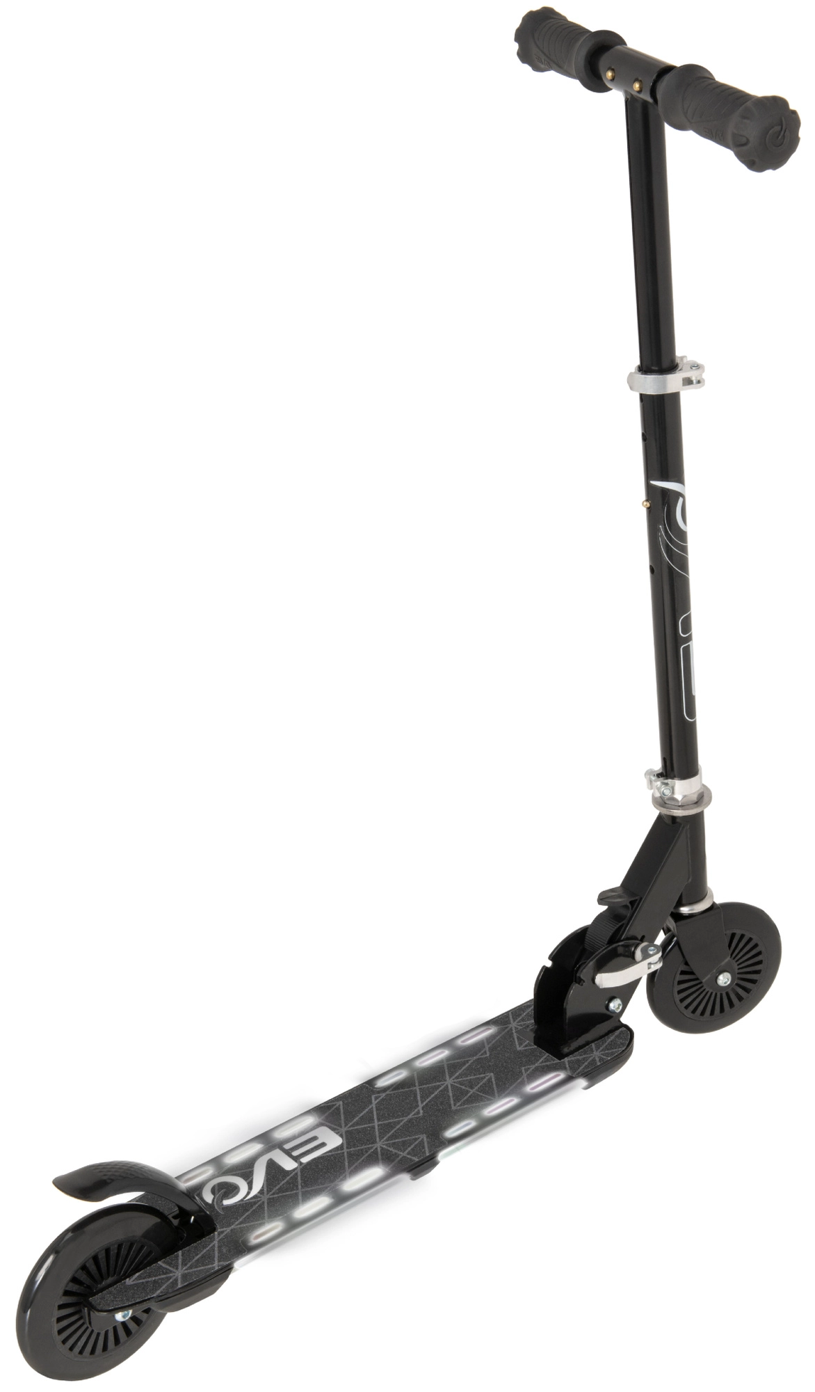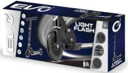 Koloběžka EVO Light Flash podporuje rovnováhu a koordinaci, přitom zůstává maximálně zábavná díky světelným efektům v podestě. Díky nastavitelné výšce řídítek 72–82 cm roste s dítětem a skládací konstrukce usnadňuje přenášení i skladování.