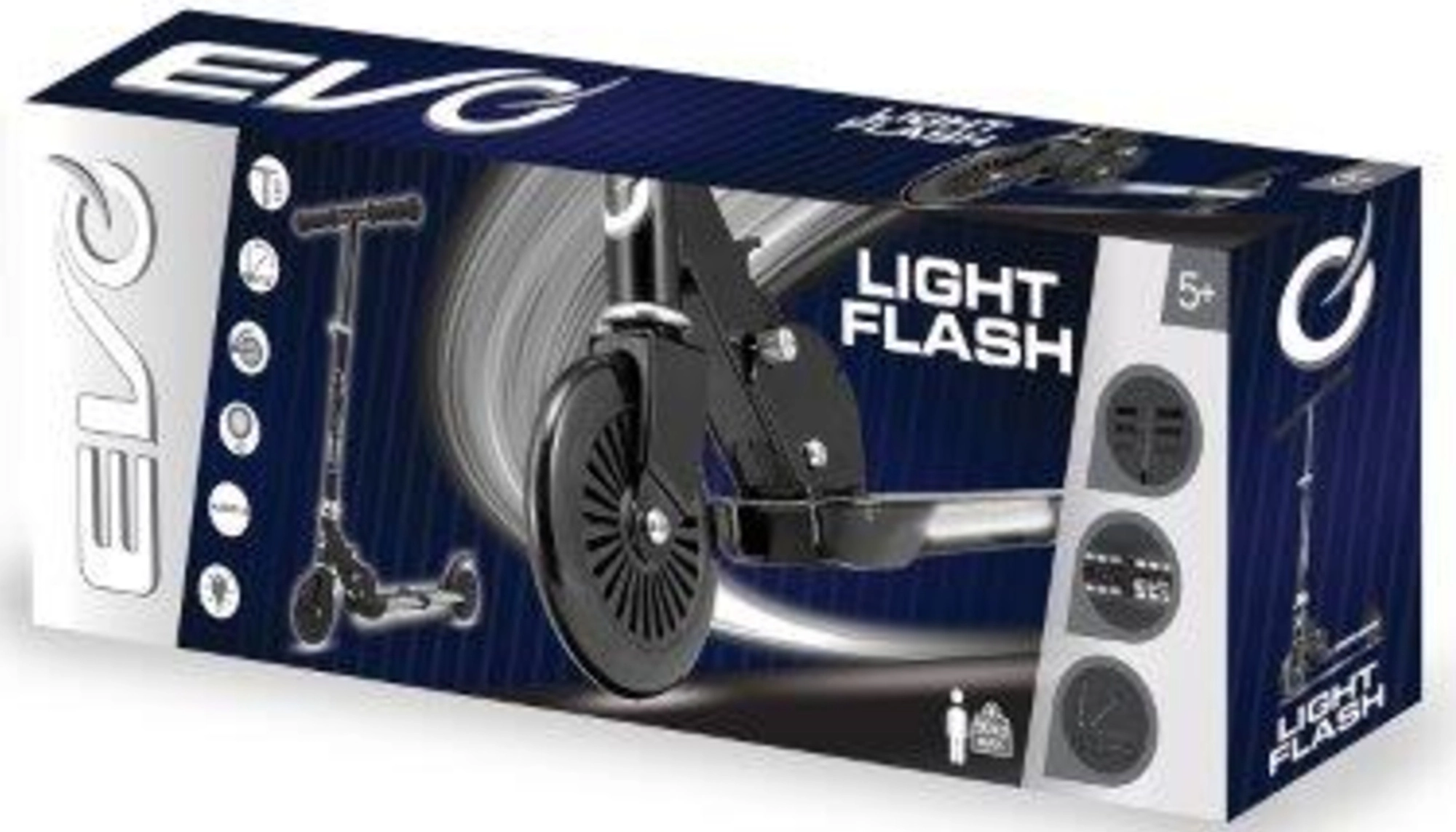 Dětská koloběžka EVO Light Flash je lehká, skládací a má nastavitelná řídítka pro děti od 5 let. Nabízí tichá kaučuková kolečka s ložisky ABEC-5, nožní brzdu na zadním blatníku a zábavnou svítící podestu na 4× AAA baterie. Ideální pro rekreační jízdu po rovném povrchu s důrazem na stabilitu a bezpečnost.