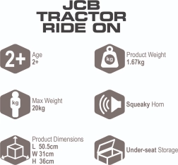 Odrážedlo JCB Fastrac potěší malé fanoušky stavebních strojů svým realistickým vzhledem a odolným provedením. Díky nožnímu pohonu děti trénují balanc a koordinaci, zatímco široká kola a stabilní konstrukce zajišťují bezpečnou jízdu. Praktický schovek pod sedadlem a klakson dělají z jízdy ještě větší zábavu.