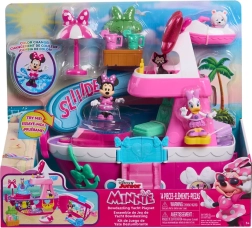 Součástí jsou figurky MINNIE, DAISY a roztomilý pejsek Snowpuff, které můžete usazovat do křesílek, na houpačku či posílat po skluzavce. Světla, zvuky a třpytivá „diskokoule“ dodají každé scénce kouzelnou atmosféru, zatímco studená voda v bazénu aktivuje magickou změnu barvy.