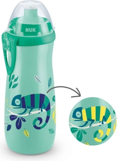 NUK Sports Cup Chameleon je spolehlivá dětská sportovní láhev pro školku, školu i volný čas. Díky měkkému silikonovému push‑pull náustku se děti napijí snadno a bezpečně – jednoduše vytáhnou a po použití zatlačí. Hygienický kryt chrání náustek před nečistotami a odolné tělo z polypropylenu bez BPA vydrží i náročnější zacházení.