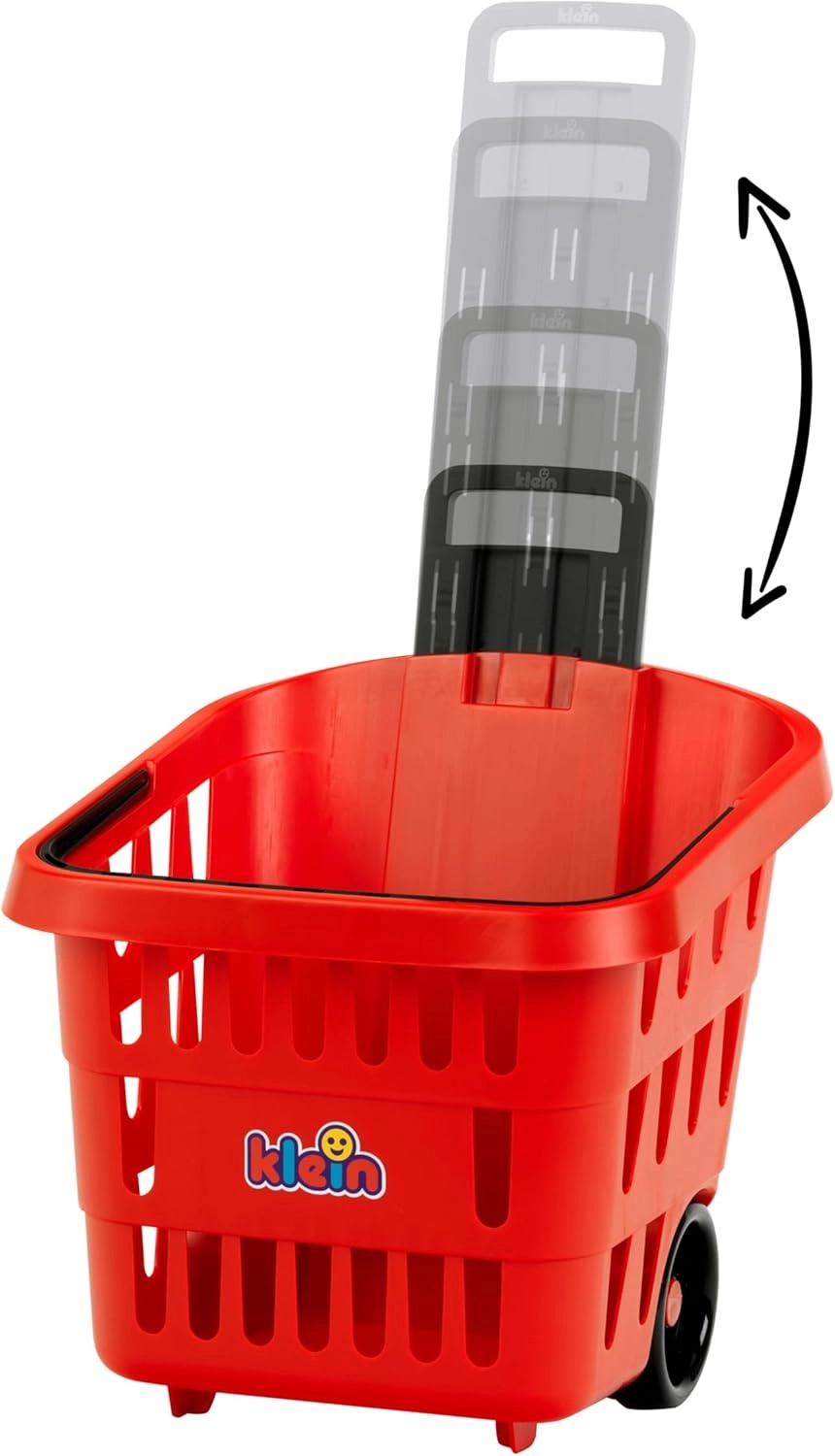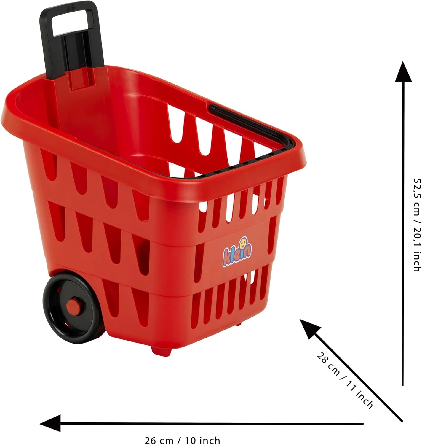 Realistický dětský nákupní vozík v červené barvě od značky THEO KLEIN nabízí skvělou zábavu při hře na obchod. Díky odolnému plastu, pohodlné rukojeti a stabilním kolečkům je vozík bezpečný, praktický a ideální pro rozvoj fantazie, sociálních dovedností a jemné motoriky dětí od 3 let.