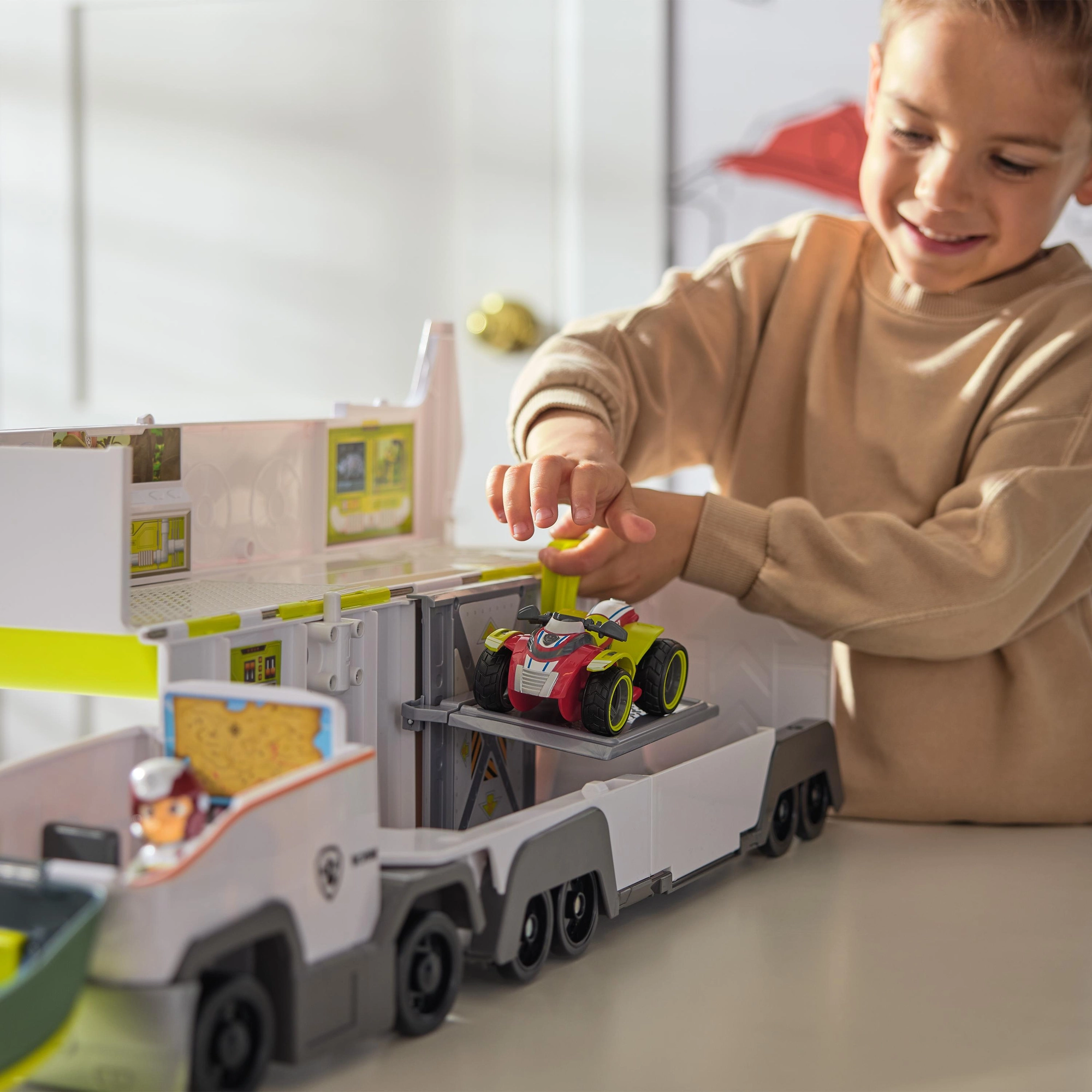 Transportér se otevře do prostorné herní stanice s panely, rampami a místem pro figurky a vozidla. Ideální pro rychlé nasazení celé party z PAW Patrol.