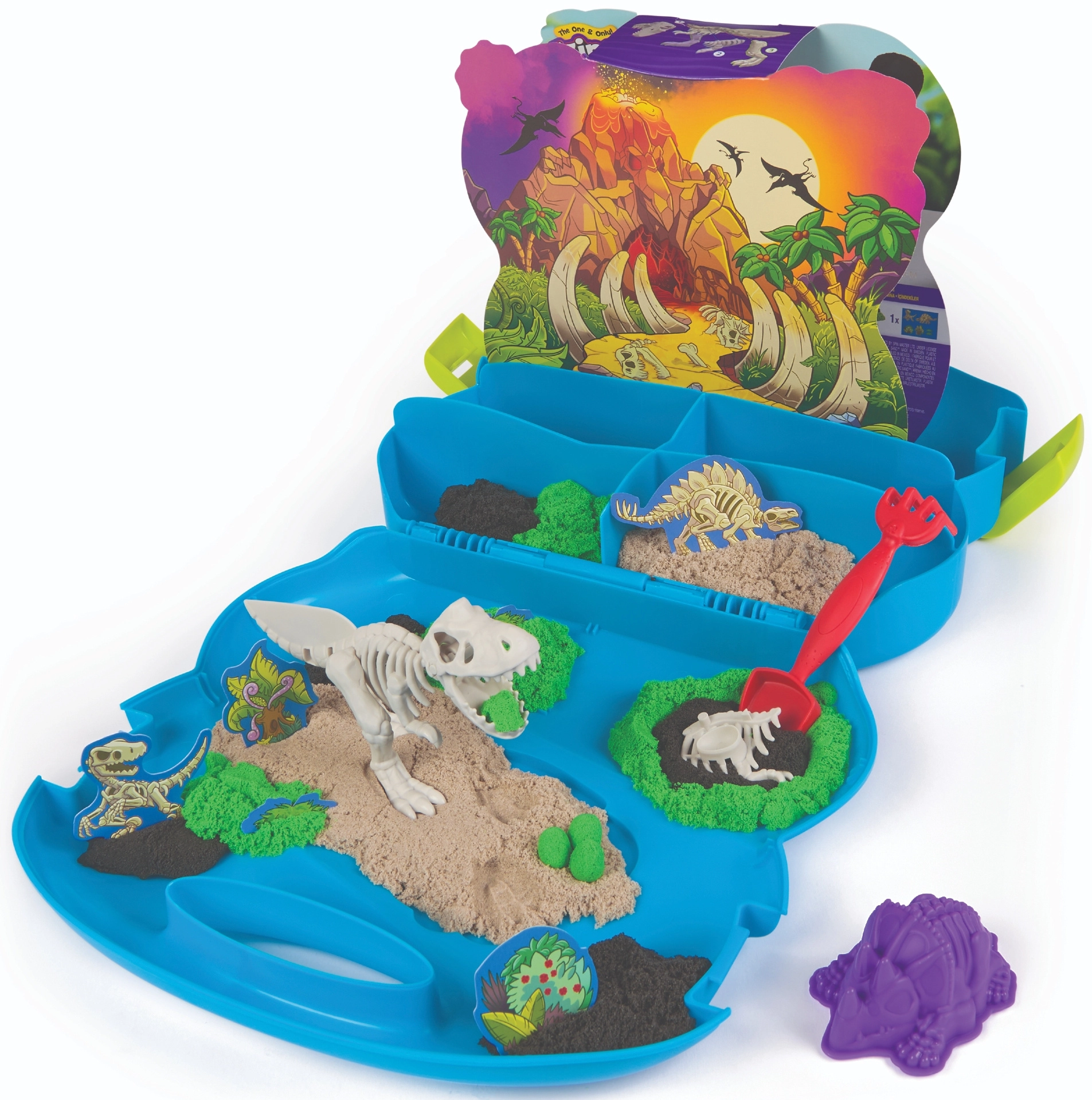 Objevte svět dinosaurů s přenosným setem s kinetickým pískem a skeletem T‑Rex. Děti mohou kopat, tvarovat a tvořit vlastní prehistorickou scénu v praktické vaničce. Kinetický písek se nelepí, nešpiní a nikdy nevysychá, takže je ideální pro kreativní hraní doma. Součástí jsou formičky, nástroje, kartonová pozadí a figurky pro hodiny zábavy a učení.