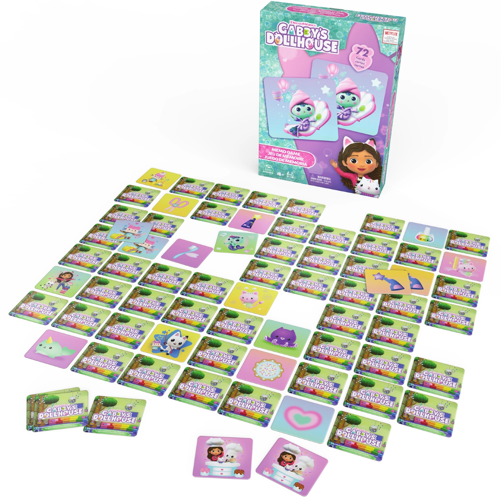 Oblíbená rodinná hra memo s motivy z animovaného seriálu Gabby’s Dollhouse od značky Spin Master přináší 72 karet plných roztomilých postaviček. Trénujte paměť, hledejte stejné dvojice a sbírejte body – ideální hra pro celou rodinu a zábavu dětí od 4 let.