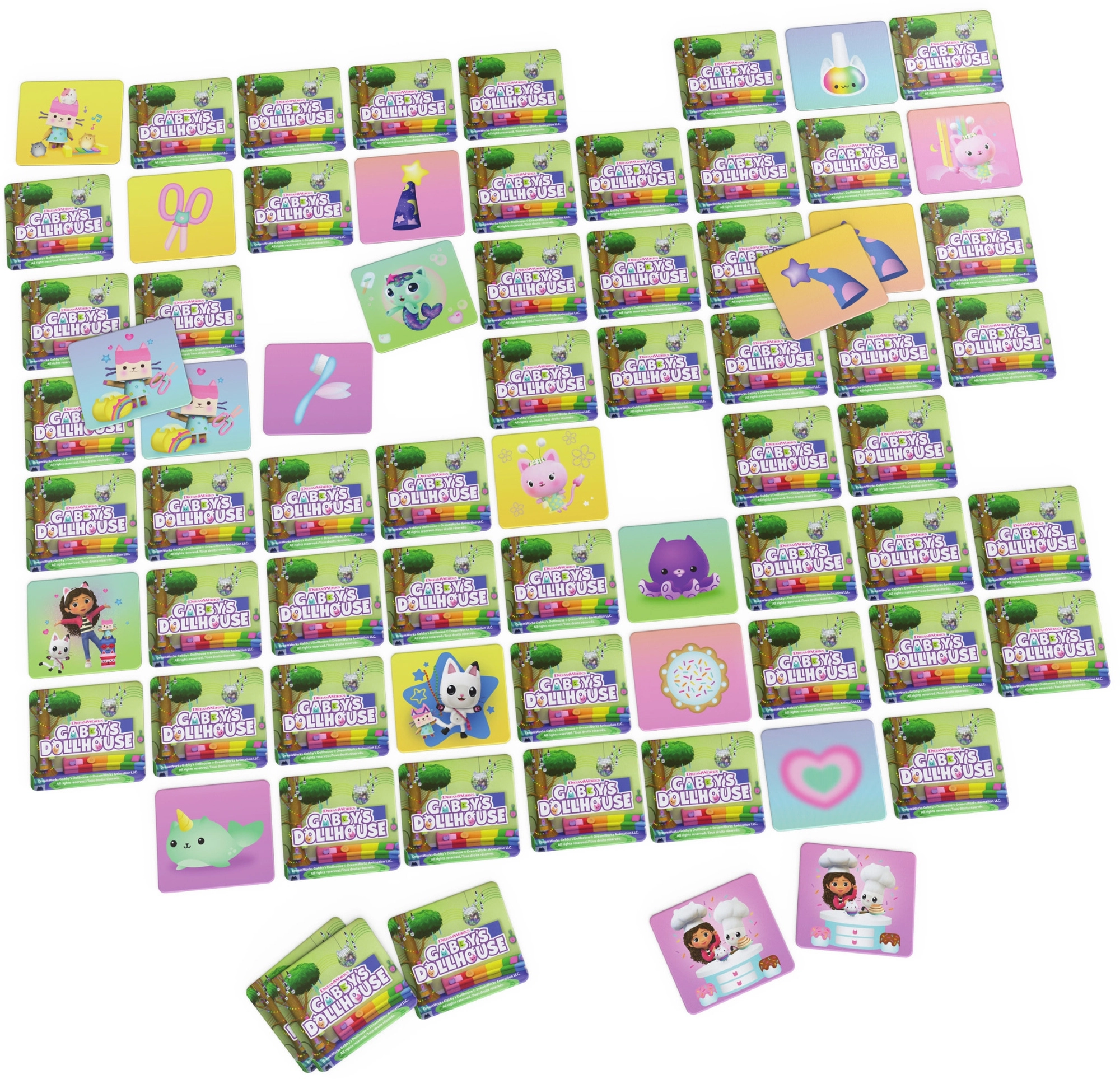 • 72 karet s postavičkami z Gabby’s Dollhouse pro dlouhou a pestrou zábavu.