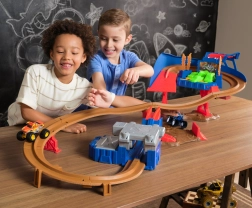 Po projetí trati se vozidla vrací na start, takže zábava neustává. Set lze navíc rychle složit a uložit.