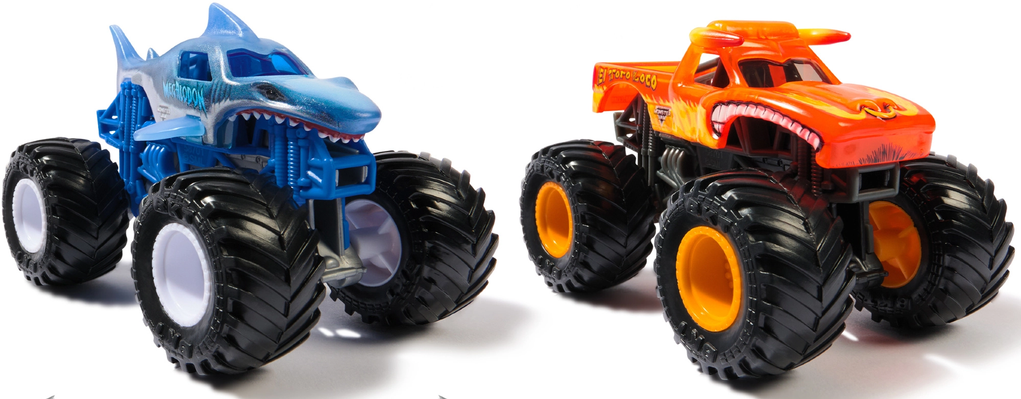 - 2 trucky 1:64 v balení: připraveno k závodění hned po sestavení.