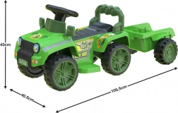 Zábavné dětské odrážedlo EVO s odnímatelným přívěsem přináší bezpečnou jízdu pro nejmenší. Má stabilní čtyři kola, jednoduché řízení volantem a pohodlné opěrky na nohy. Díky živé zelené barvě a atraktivnímu motivu Jurassic podporuje koordinaci a rovnováhu a nabízí spoustu kreativní zábavy už od 2 let.