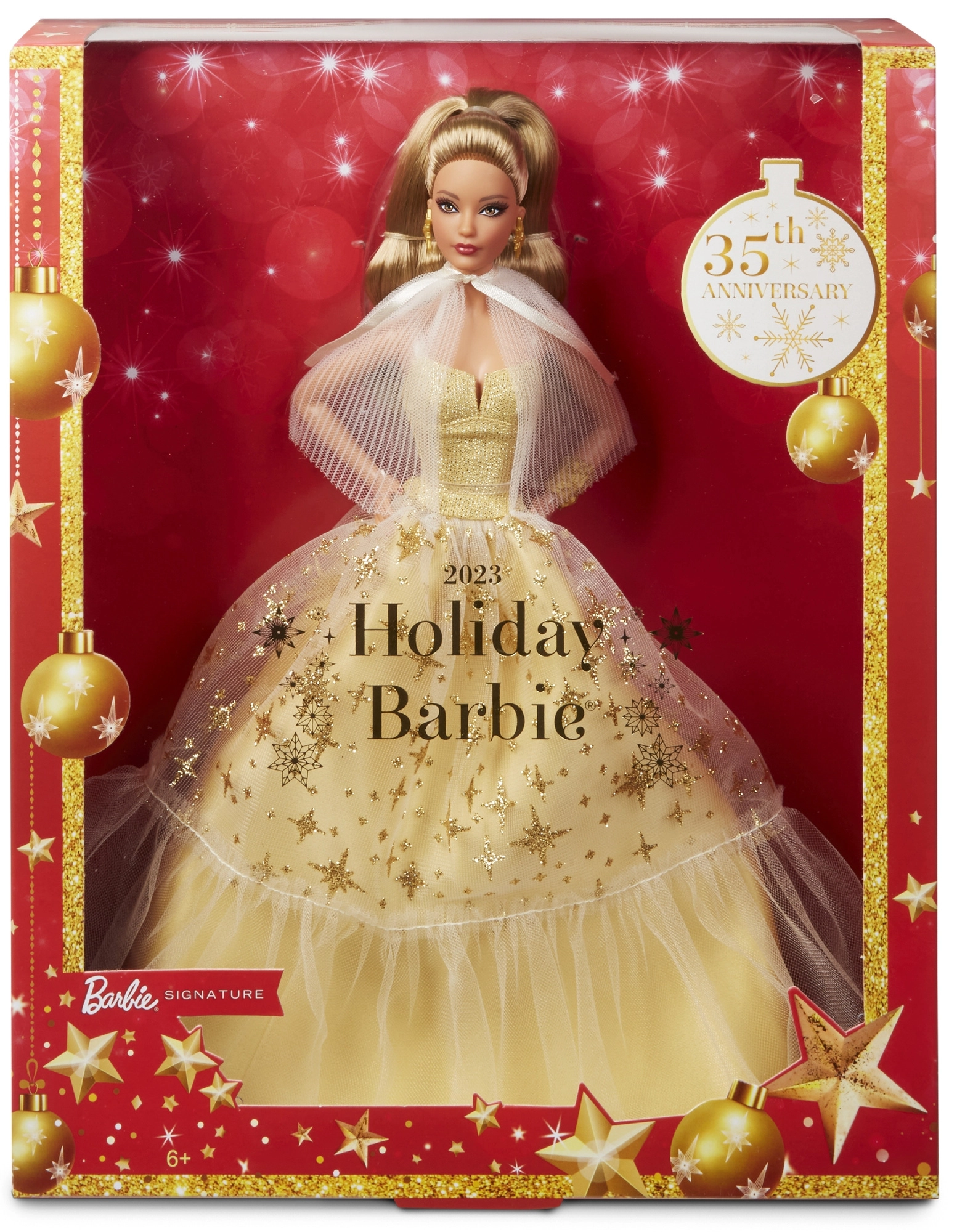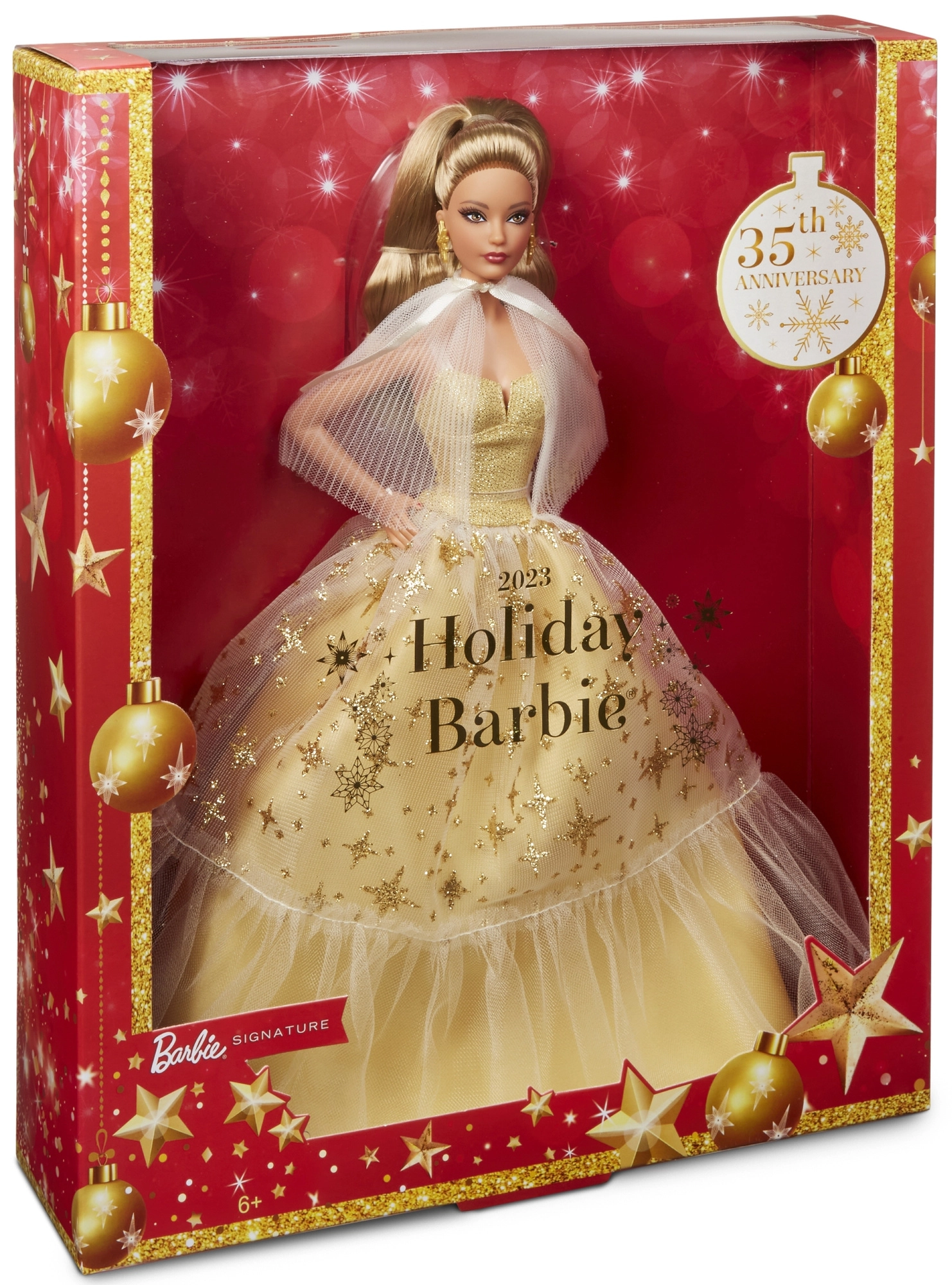 Tato výjimečná sběratelská edice oslavuje 35 let ikonické řady Barbie. Panenka zaujme sofistikovaným vzhledem: lehce tmavší blond vlasy, jasně hnědé oči a výraz tváře podtrhují její vyzrálý charakter. Elegantní zlaté náušnice a červené nehty doladí slavnostní styl.