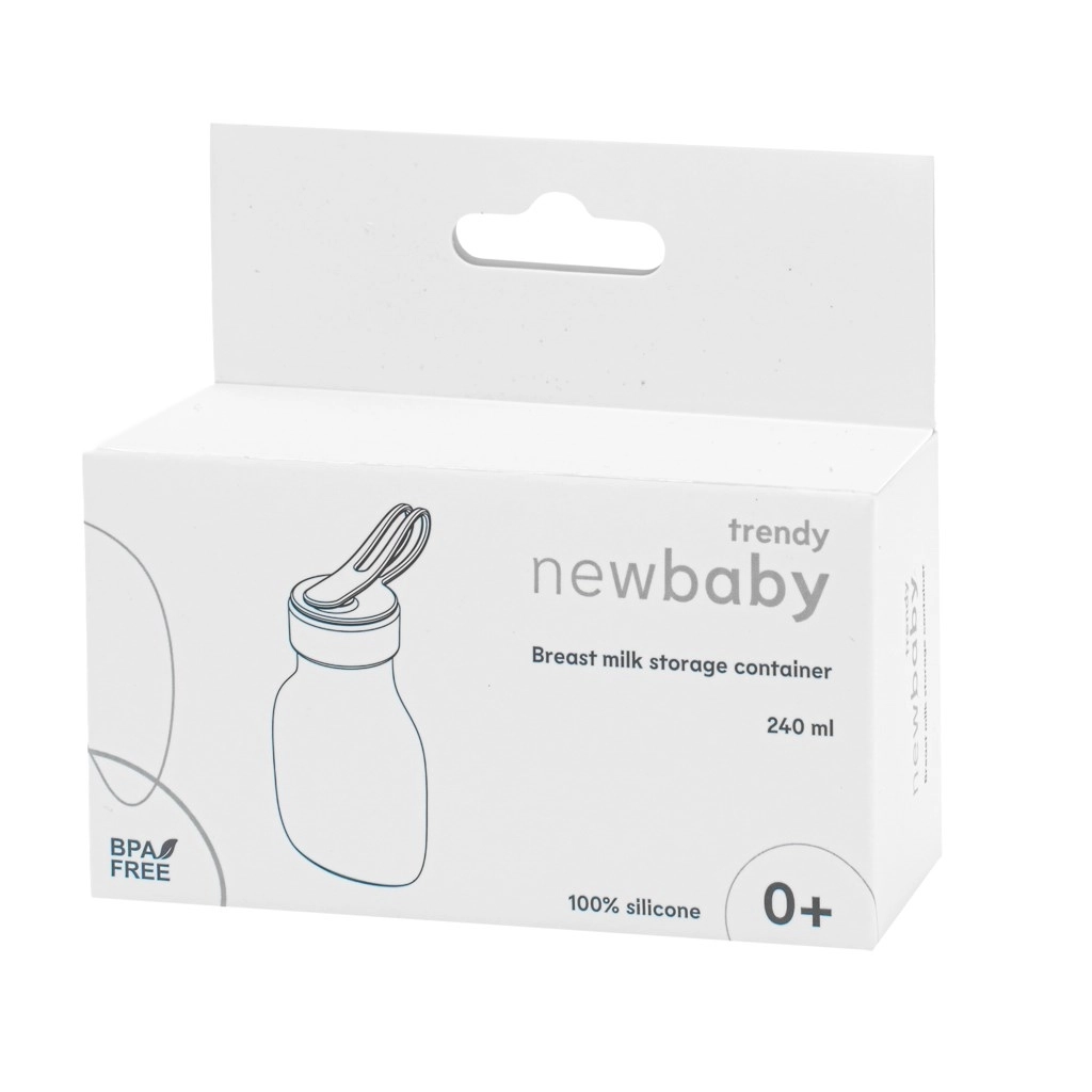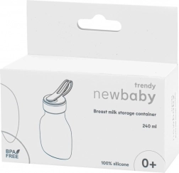 Silikonový zásobník na mateřské mléko NEW BABY z řady Trendy je navržen pro pohodlné a hygienické skladování mléka od narození. Matný, částečně průsvitný korpus s vyznačenou odměrnou stupnicí v ml a oz umožňuje přesné dávkování, zatímco vroubkované šroubovací víčko s poutkem brání protečení a usnadňuje přenášení.