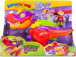 V‑Rex Superdino je spojencem padouchů ze světa SUPERTHINGS a skvělou volbou pro malé milovníky akce i sběratele. Díky multikloubové konstrukci snadno nastavíte dynamické pózy, zatímco světla a řev dodají soubojům tu správnou atmosféru.