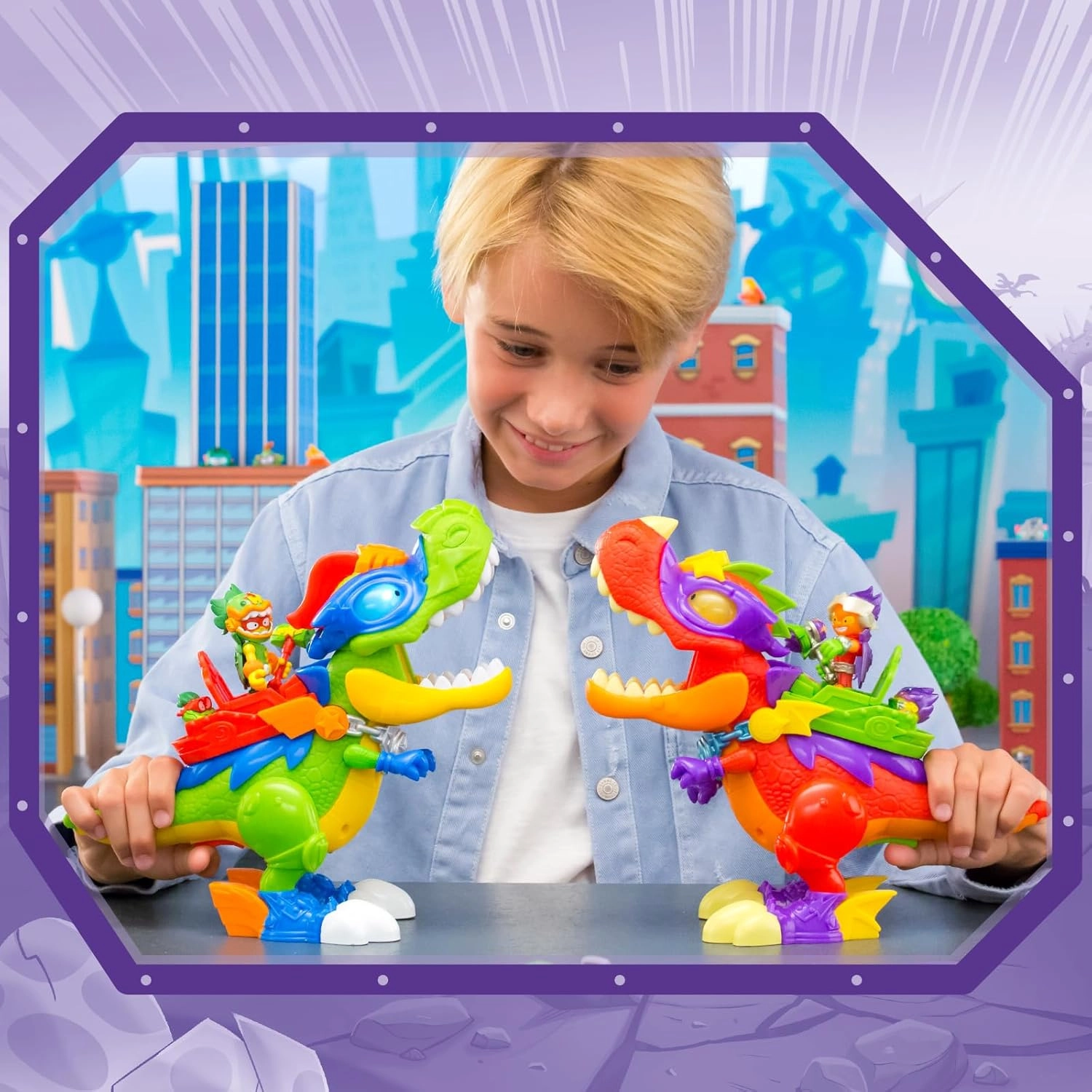 - Obsah balení: 1× figurka V‑Rex Superdino se světly a zvuky, 1× exkluzivní SuperThing (padouch), 1× exkluzivní Kazoom Kid.