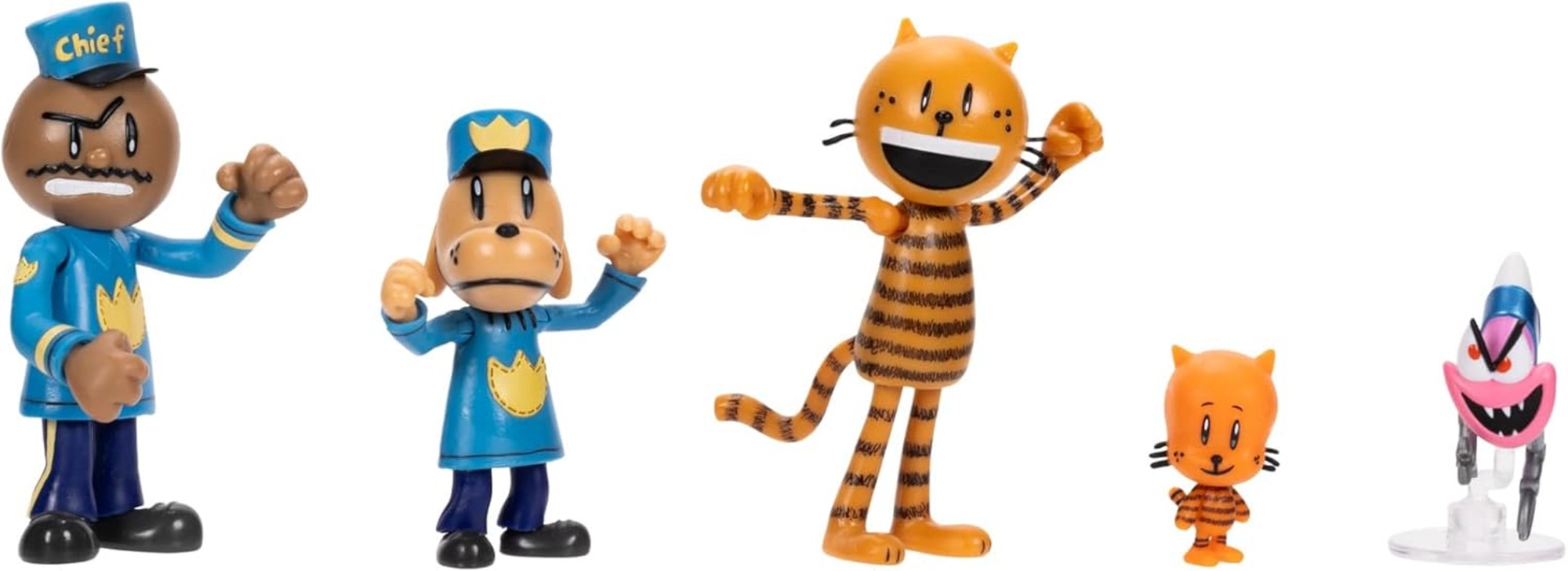 Souprava obsahuje pět ikonických postav: Chief, Dog Man, Petey, Lil’ Petey a Flippy. Díky kombinaci hrdinů i záporáka děti snadno vytvoří napínavé scény a rozvinou fantazii a vyprávění příběhů.