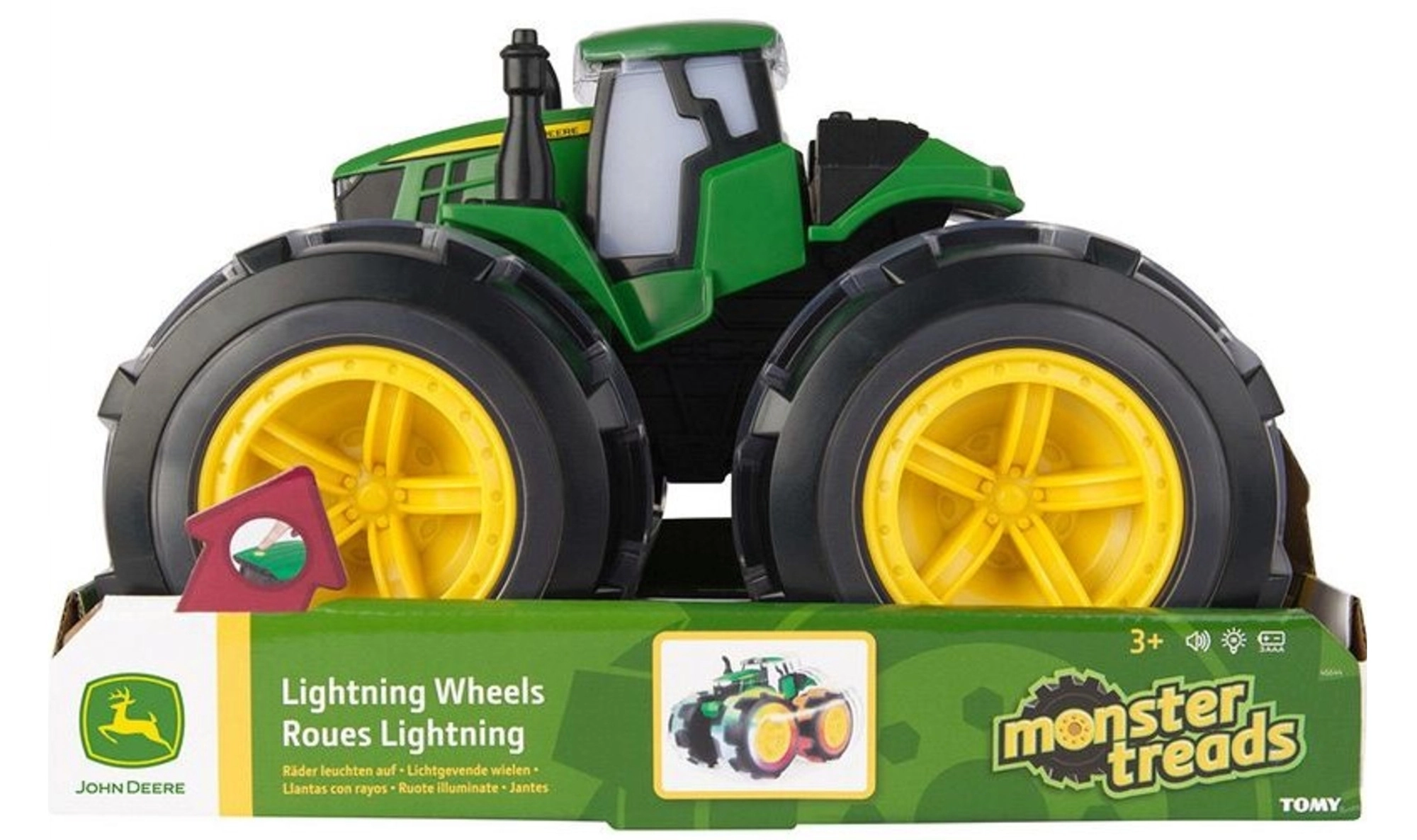 Oblíbený traktor John Deere Monster Treads Lightning Wheels potěší každé dítě, které miluje zemědělské stroje a akční jízdu. Robustní plastové provedení, obří pneumatiky a světelné efekty promění každou hru v nevšední zážitek.