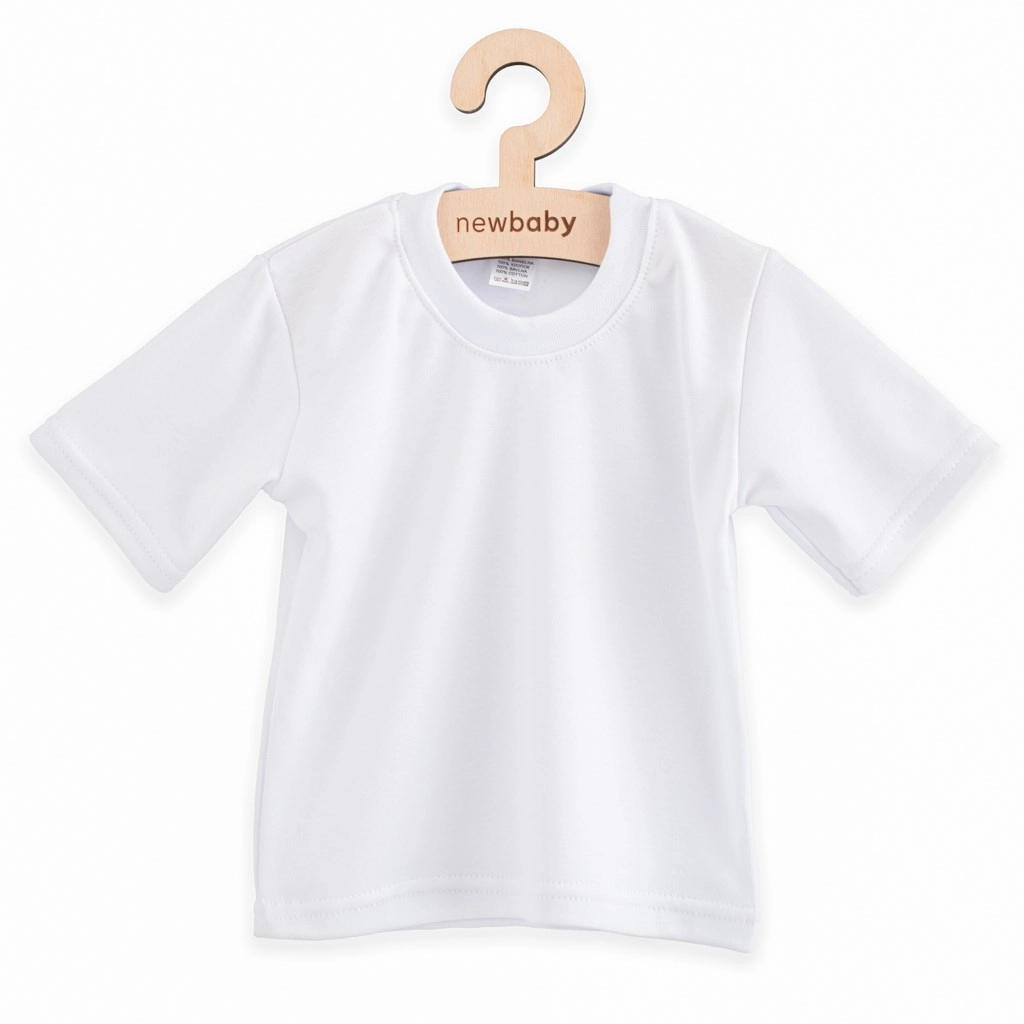 Pohodlné dětské tričko z kvalitní 100% bavlny od značky New Baby je ideální na doma i do školky. Má krátký rukáv, jemný lem u krku bez zapínání pro snadné oblékání přes hlavičku a je certifikované OEKO-TEX STANDARD 100.