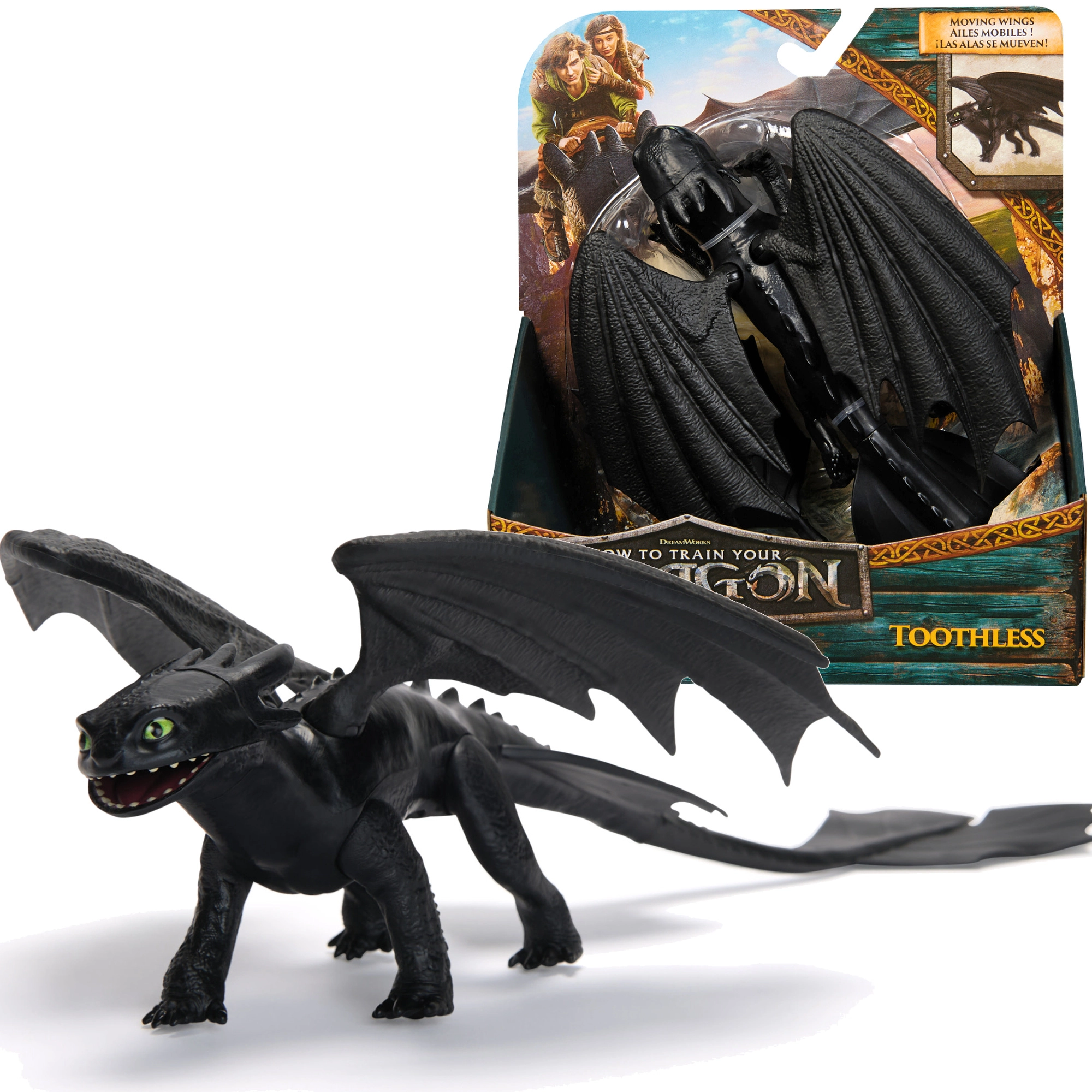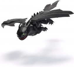 Objevte ikonického draka TOOTHLESS z oblíbené série Jak vycvičit draka. Figurka v černém provedení vyniká detailními texturami šupin, výraznýma zelenýma očima a širokými křídly. Je skvělá pro kreativní hraní, vyprávění příběhů i jako sběratelský kousek.