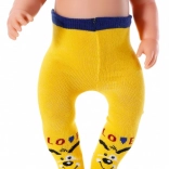 Punčocháče Baby Born přinášejí pohodlí a styl v jednom balení, obohacené o hravé vzory. Díky motivům králíčka Benna a pejska Bella budou děti nadšené. První dvojice kombinace růžové a modré překvapí Benno mávajícím z růžových punčocháčů s modrým konfetti a králíčka na modrých pruzích. Druhá dvojice nabízí slunečně žluté a barevně pruhované punčocháče s obrázkem pejska.