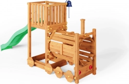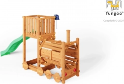 Dřevěné zahradní hřiště FUNGOO Loco s lokomotivou a skluzavkou