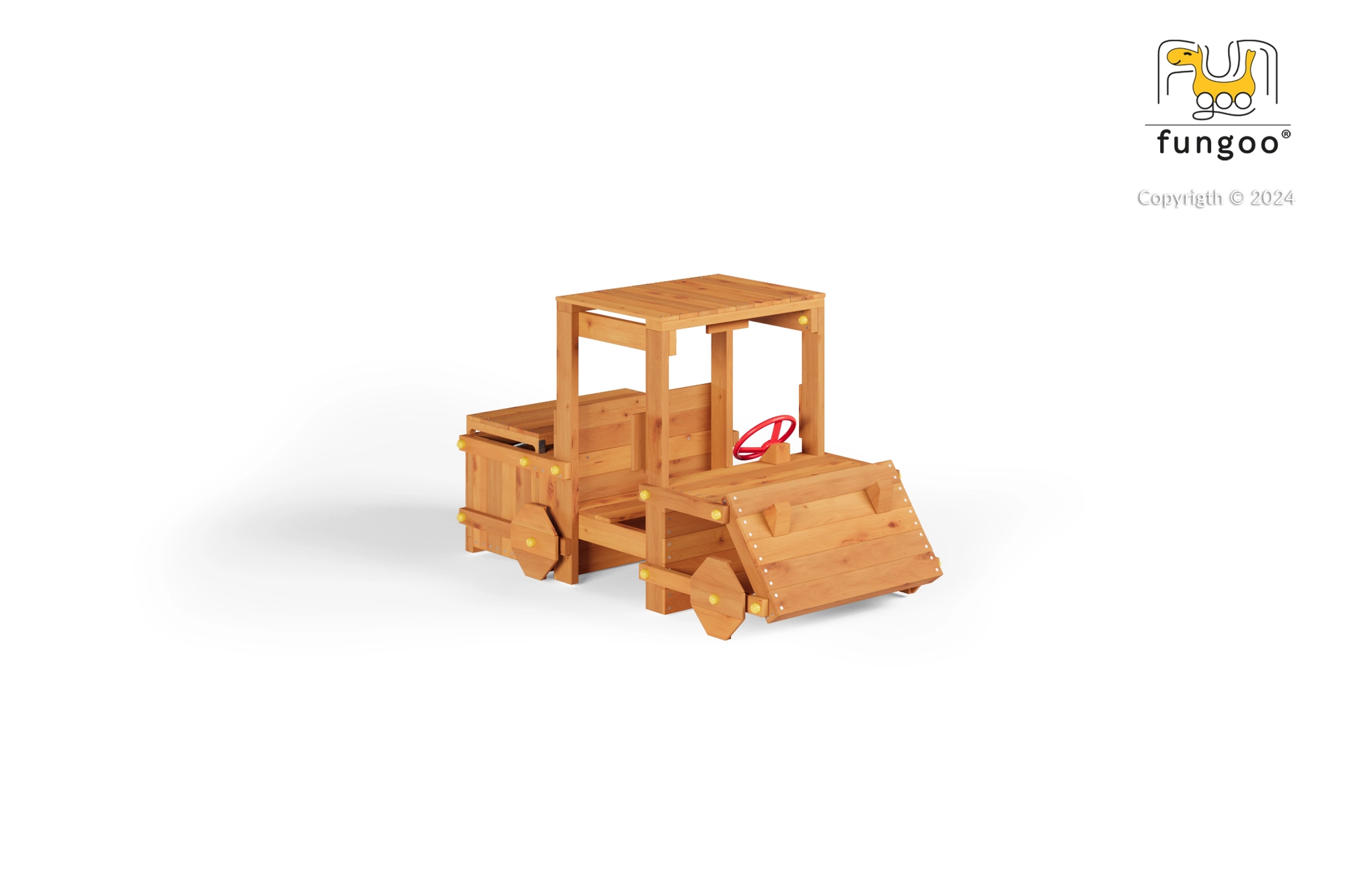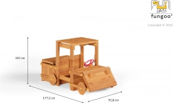 Dřevěné venkovní vozidlo GARDEN BUGGY je originální prvek pro zahradní zábavu, který láká ke hře na řidiče, průzkumníky i stavitele. Realistické provedení s přední "radlicí", červeným volantem a krytou kabinou povzbuzuje děti k nápaditým dobrodružstvím – od safari až po hledání pokladů.