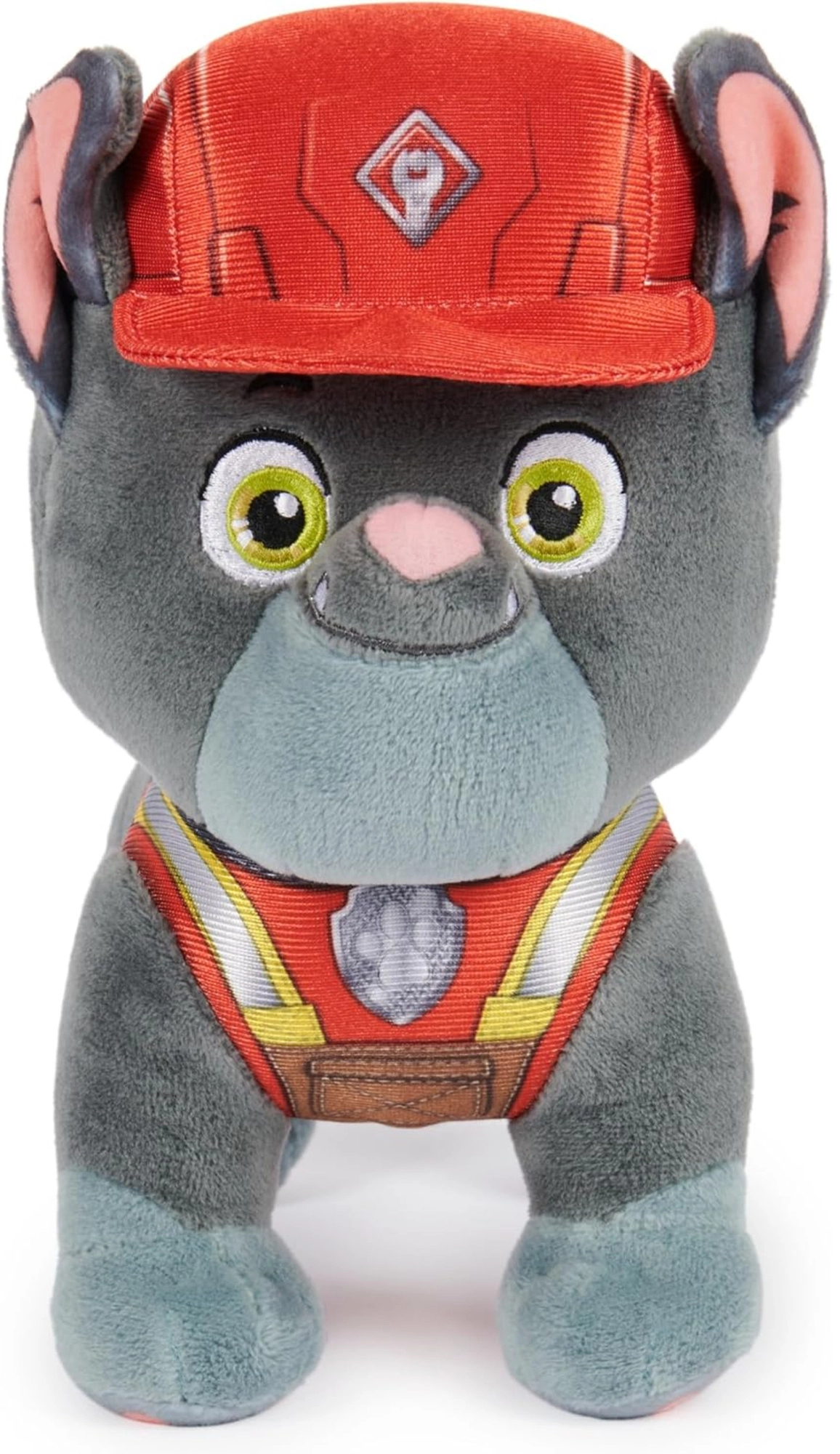 Plyšák Charger je energický francouzský buldoček ze série PAW Patrol: Rubble & Crew, kde pomáhá s přepravou těžkých nákladů. Tato kvalitně zpracovaná hračka od společnosti Spin Master věrně zachycuje jeho vzhled – od červené přilby a vesty s reflexními prvky až po jemnou šedo-stříbrnou srst a velké vyšívané oči.