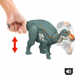 Figurka od společnosti Mattel věrně zobrazuje Maiasauru s realistickou texturou kůže, výraznými barvami a detailním zpracováním. Díky pohyblivým kloubům v nohách, krku a ocasu snadno nastavíte dynamické pózy od klidné chůze až po útok. Ovládání ocasu aktivuje charakteristický úder čelistí a řev, což umocní realistické herní scény.