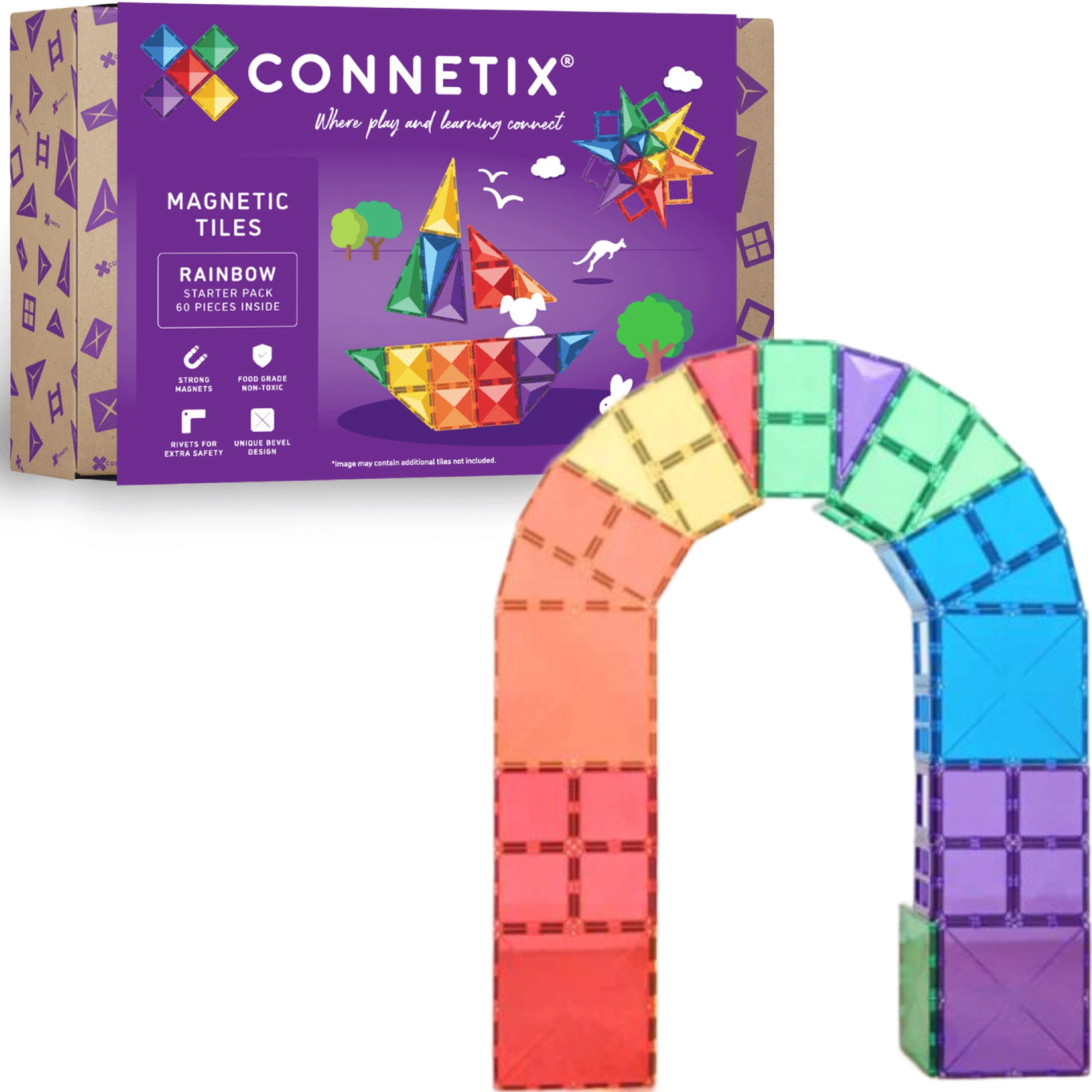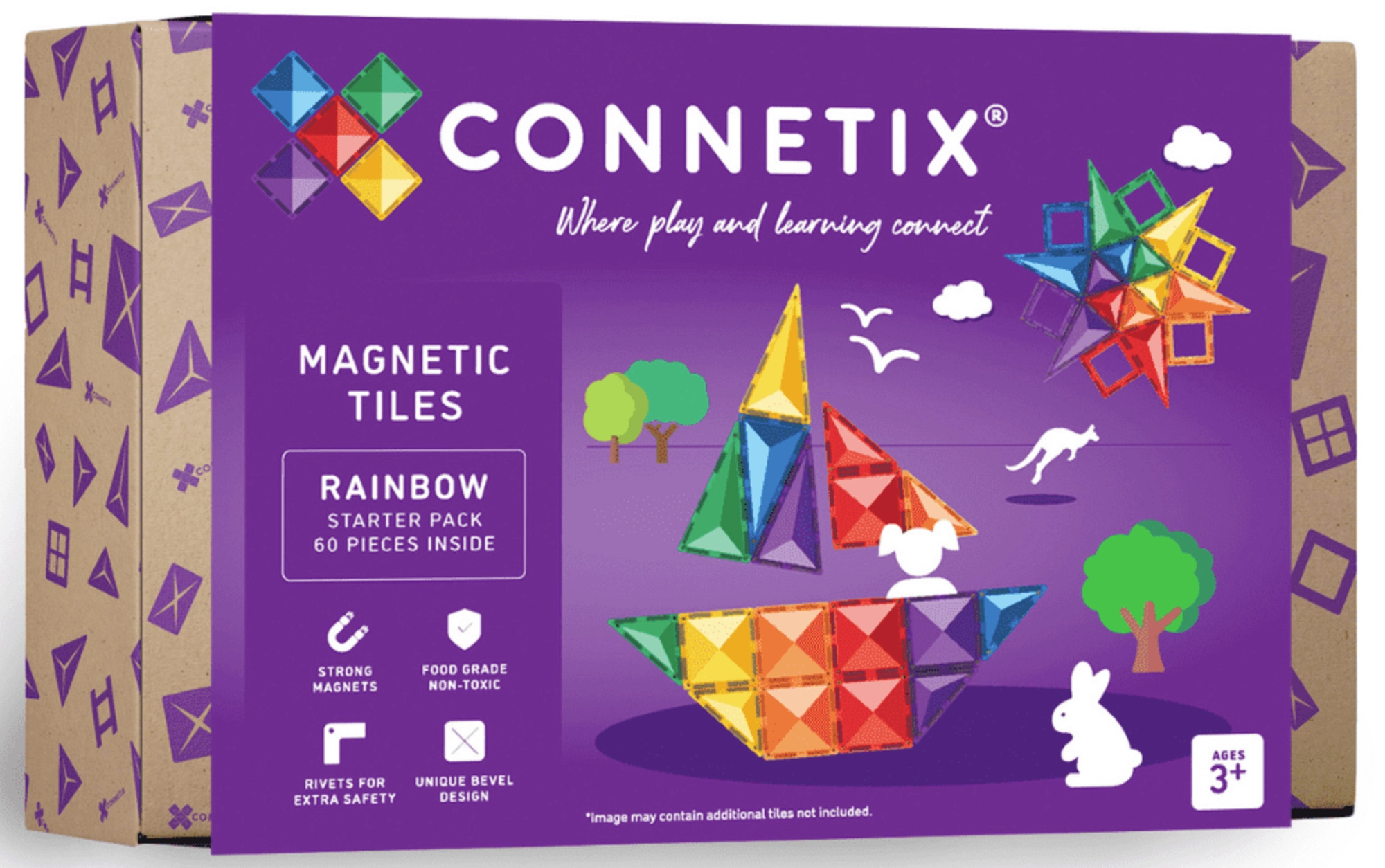 Startovací sada CONNETIX Rainbow Starter Pack přináší 60 kvalitních, průsvitných magnetických dlaždic v intenzivních barvách, se zaoblenými hranami a velmi silnými neodymovými magnety pro stabilní konstrukce. Děti si zamilují charakteristické „cvaknutí“ při spojování, zatímco přirozeně rozvíjejí matematiku, fyziku, techniku i umění.