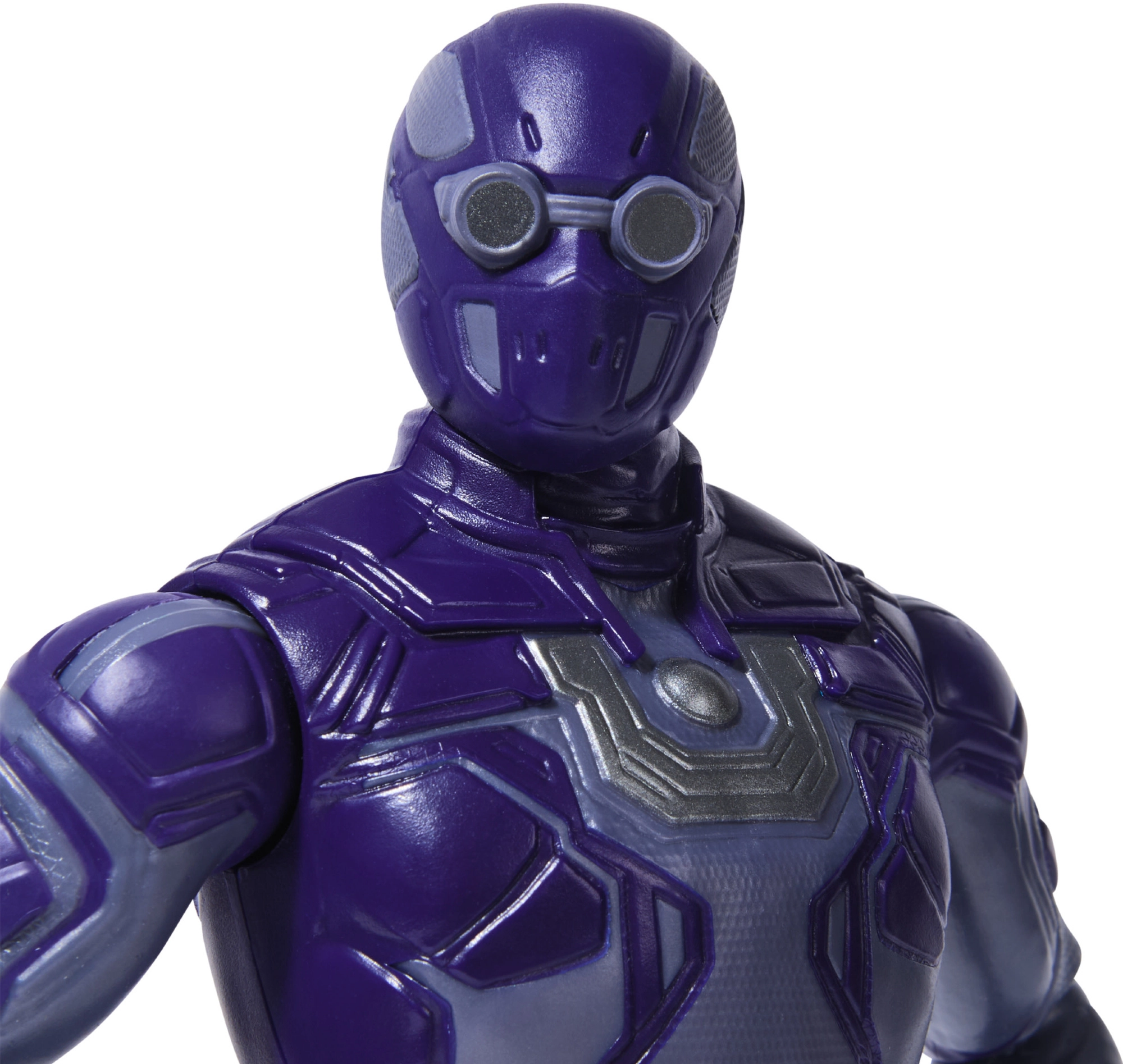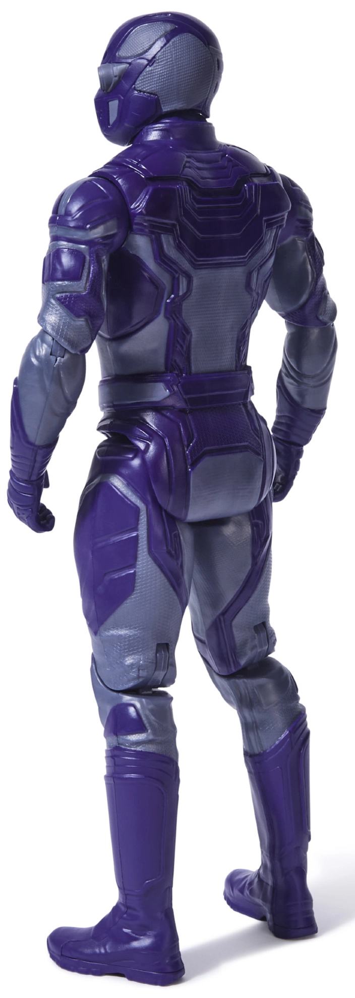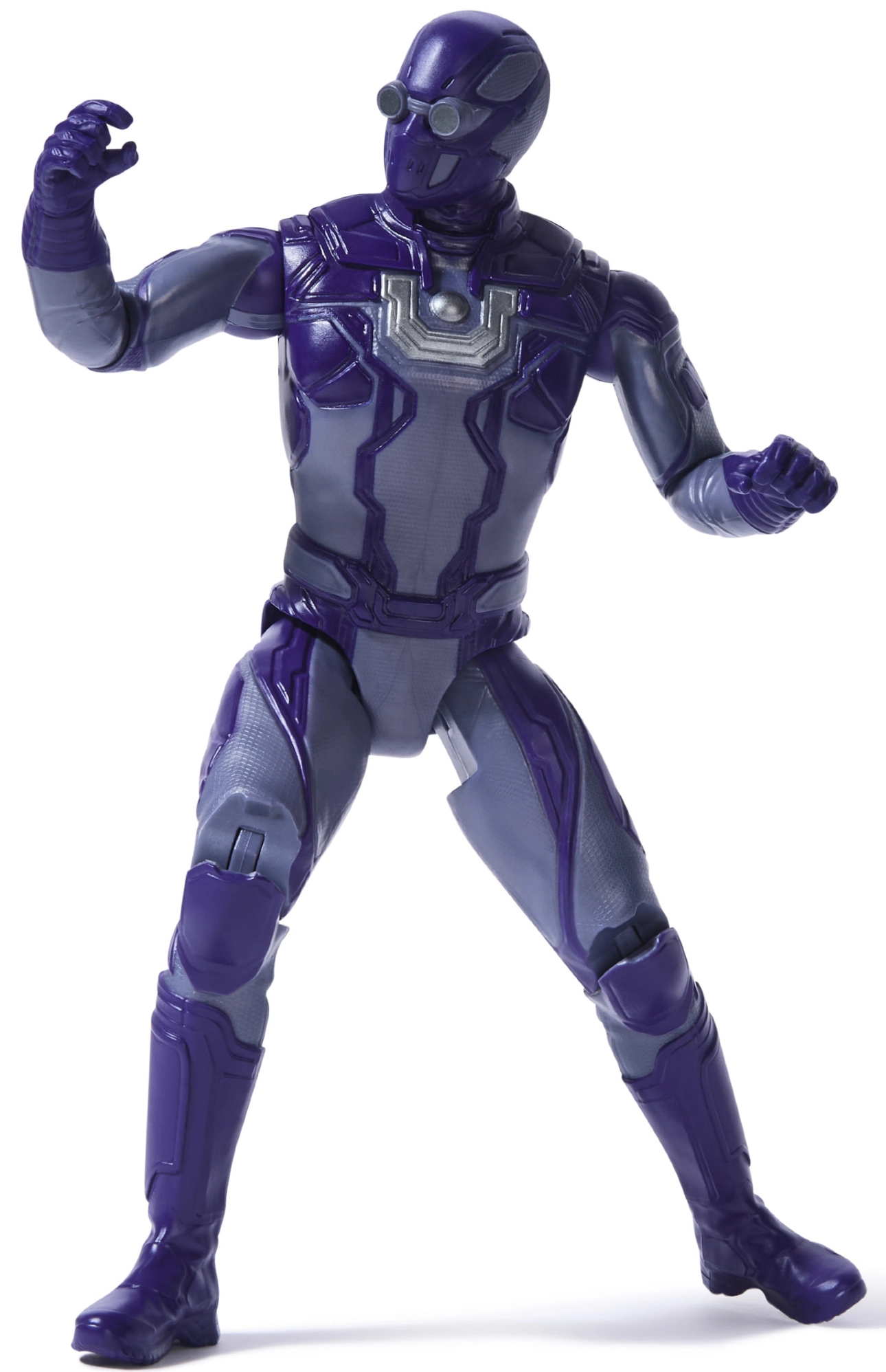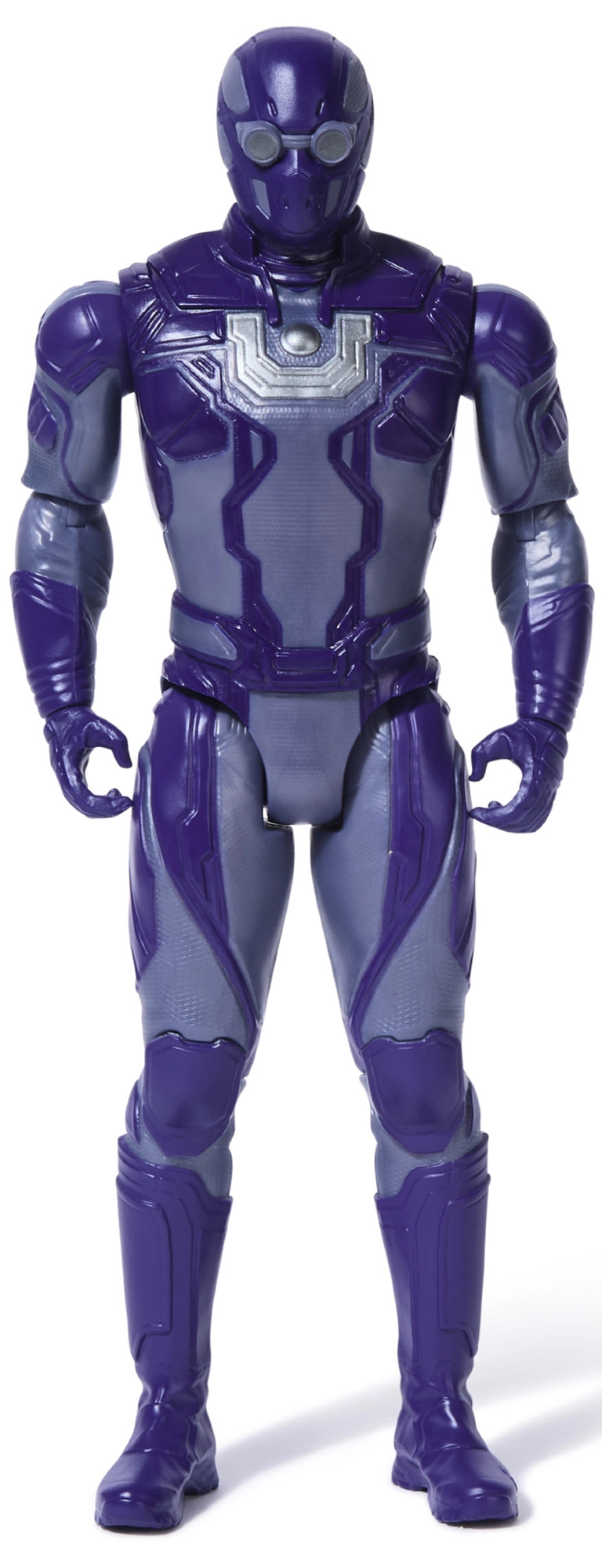 Fialové brnění s precizními detaily a ikonickým znakem na hrudi věrně odkazuje na postavu z univerza DC.