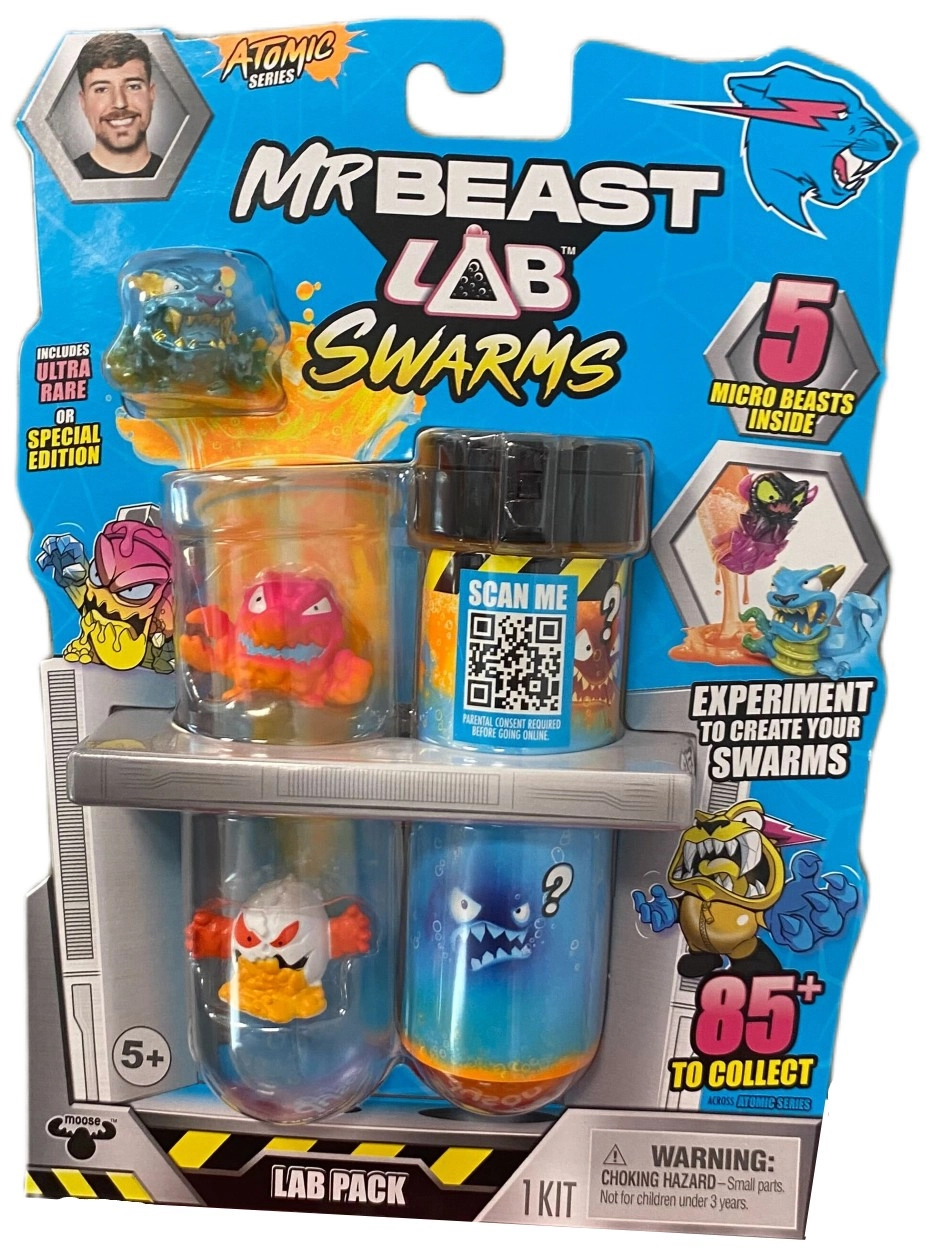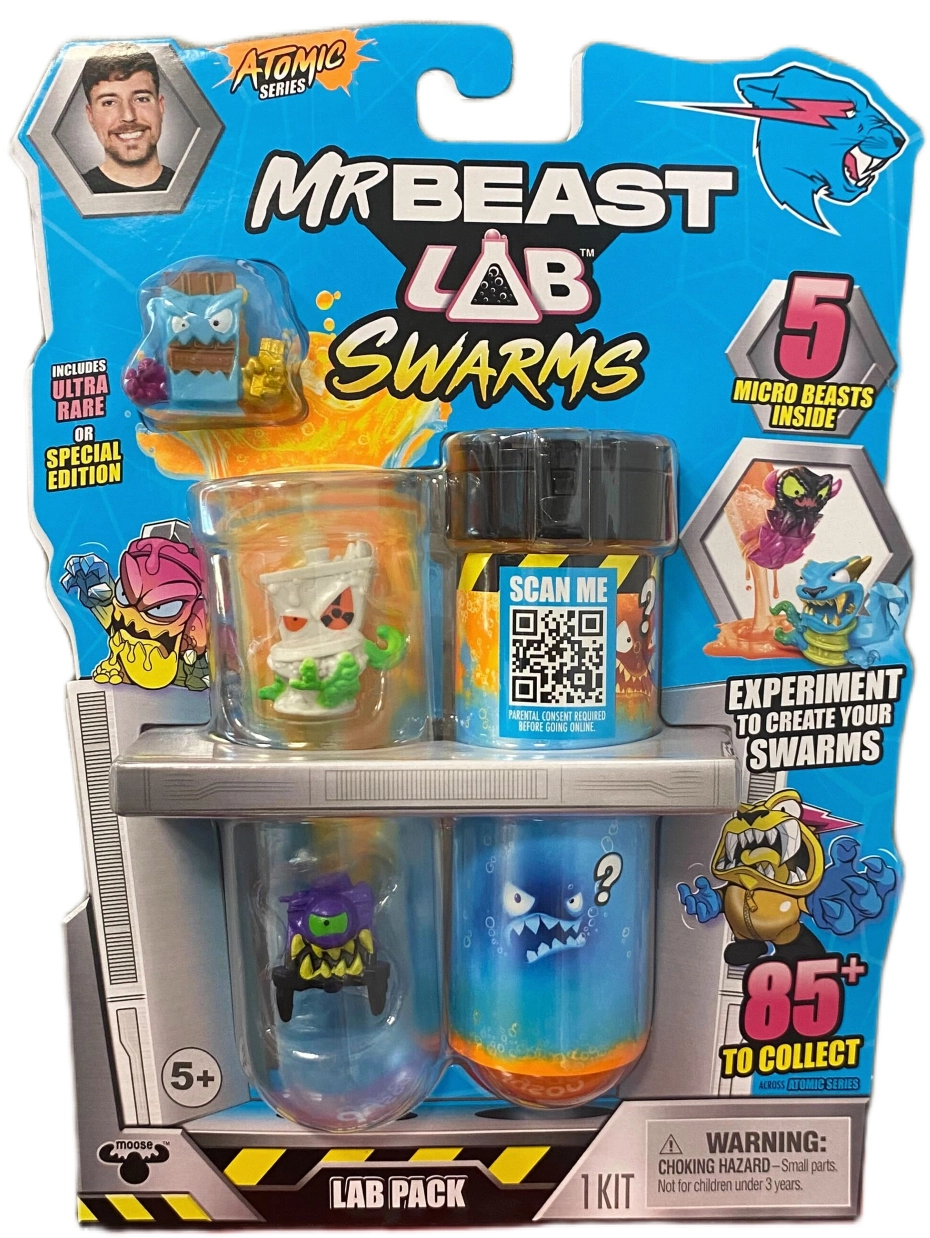 Objevte vzrušující svět MRBEAST Lab Swarms s balením Atomic Lab Pack, které ukrývá 5 mikro figurek k nasbírání. Každé otevření přináší překvapení, možnost získat vzácné a ultra vzácné postavy a zábavný odhalovací proces s pěnivým efektem. Ideální pro fanoušky, sběratele i děti milující kreativní a hmatovou hru se slizem.