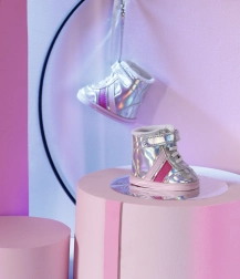 Šněrovací boty s holografickým efektem a růžovými prvky jsou hitem v oblasti módy pro panenky.