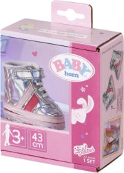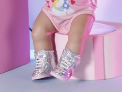 BABY born Holografické sportovní boty jsou ideálním doplňkem pro každou malou stylistku. Tyto stylové stříbrné boty s růžovými pruhy a suchými zipy zaručují snadné obouvání a skvěle doladí každé módní oblečení pro panenky.
