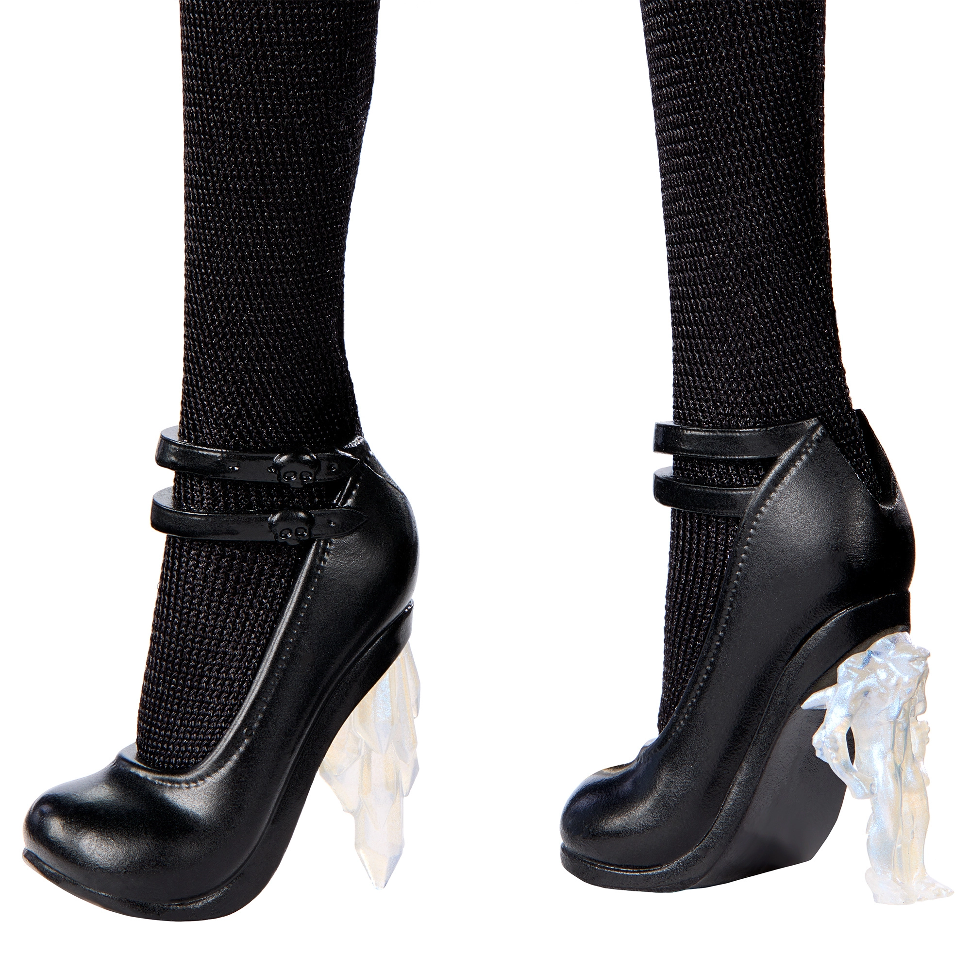 Propracované doplňky, jako stříbrný pásek, náušnice a lodičky s krystalickými podpatky, podtrhují gotický styl a činí z panenky výrazný kousek do každé sbírky. Díky kloubovým rukám a nohám snadno zaujme různé pózy – ideální pro focení i expozici.