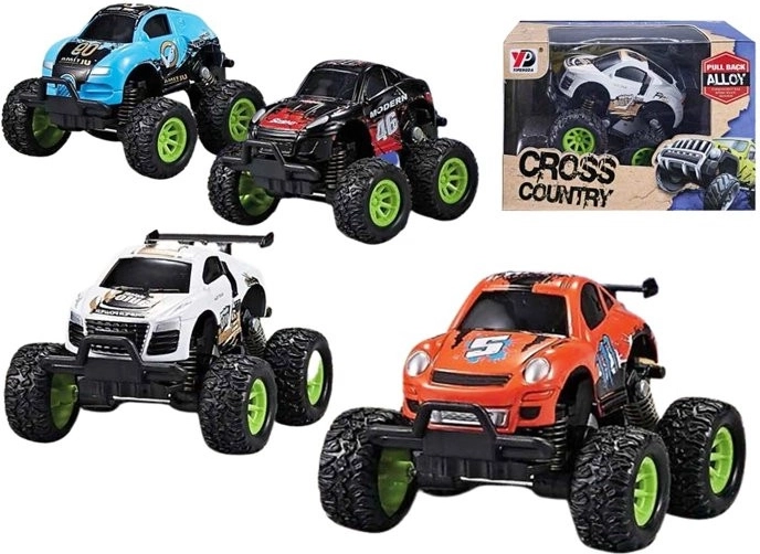 Zábavný model off-road autíčka na zpětný chod pro malé nadšence do terénu. Díky zotrvačníku stačí natáhnout a pustit – auto se samo rozjede. K dispozici dvě barevné varianty. Cena za 1 kus. Nevhodné pro děti do 3 let.