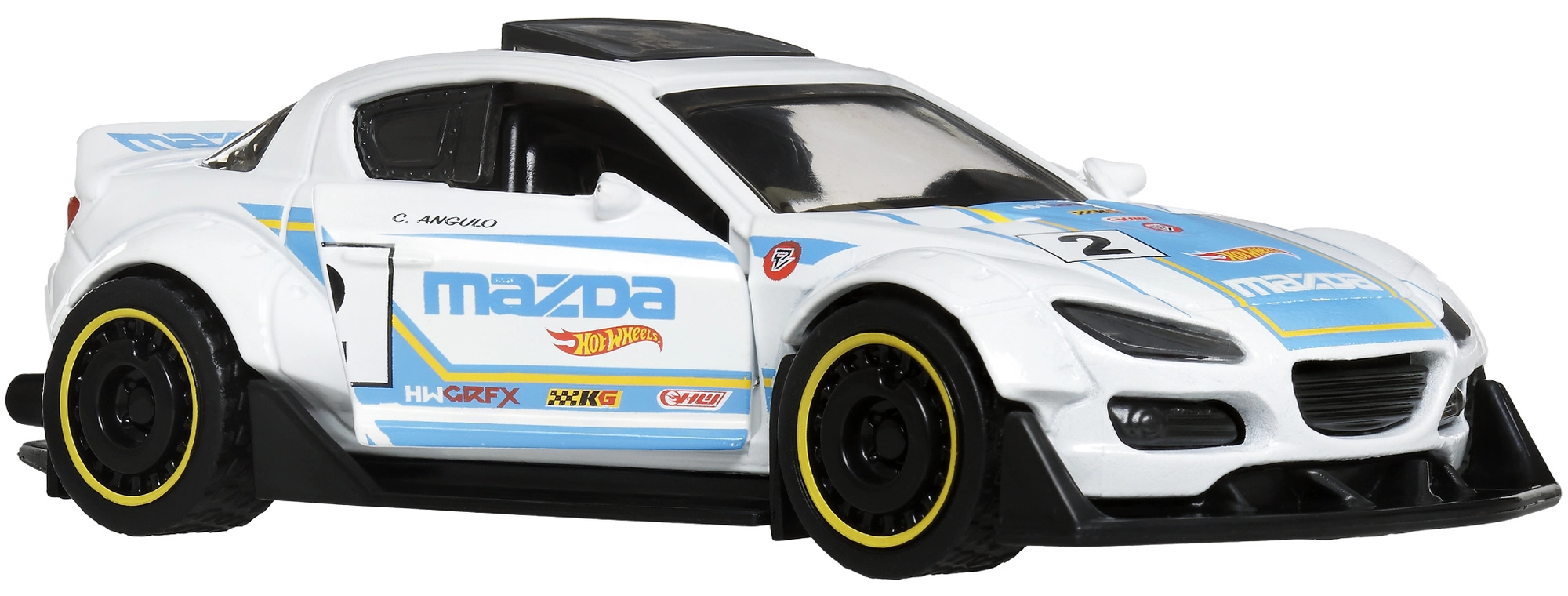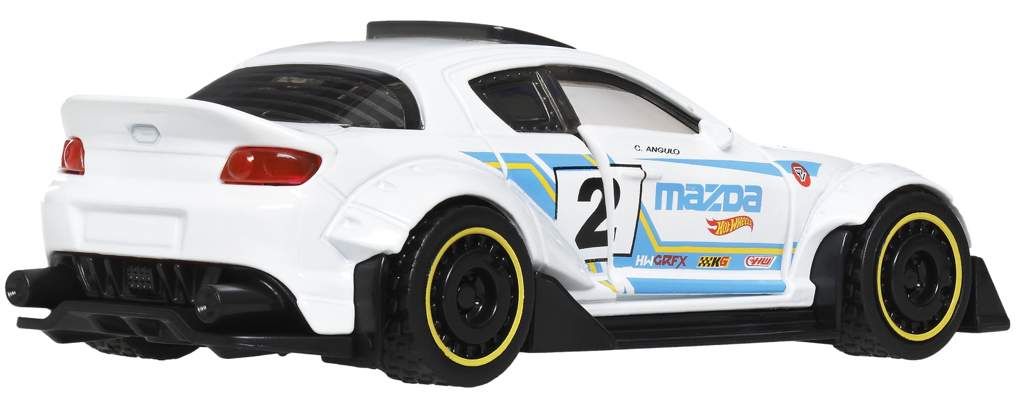 Volně se otáčející kola, zadní spoiler a precizní potisky s čísly dodávají modelu autentický charakter.