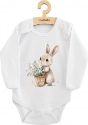 Roztomilé a pohodlné dětské body z 100% přírodní bavlny s originálním potiskem králíčka a kytiček. Měkký a prodyšný materiál je šetrný k citlivé pokožce, zatímco praktické zapínání na cvočky na rameni a mezi nožičkami usnadňuje oblékání i přebalování. Bezpečný potisk s certifikací OEKO-TEX STANDARD 100 zaručuje kvalitu a komfort každý den.
