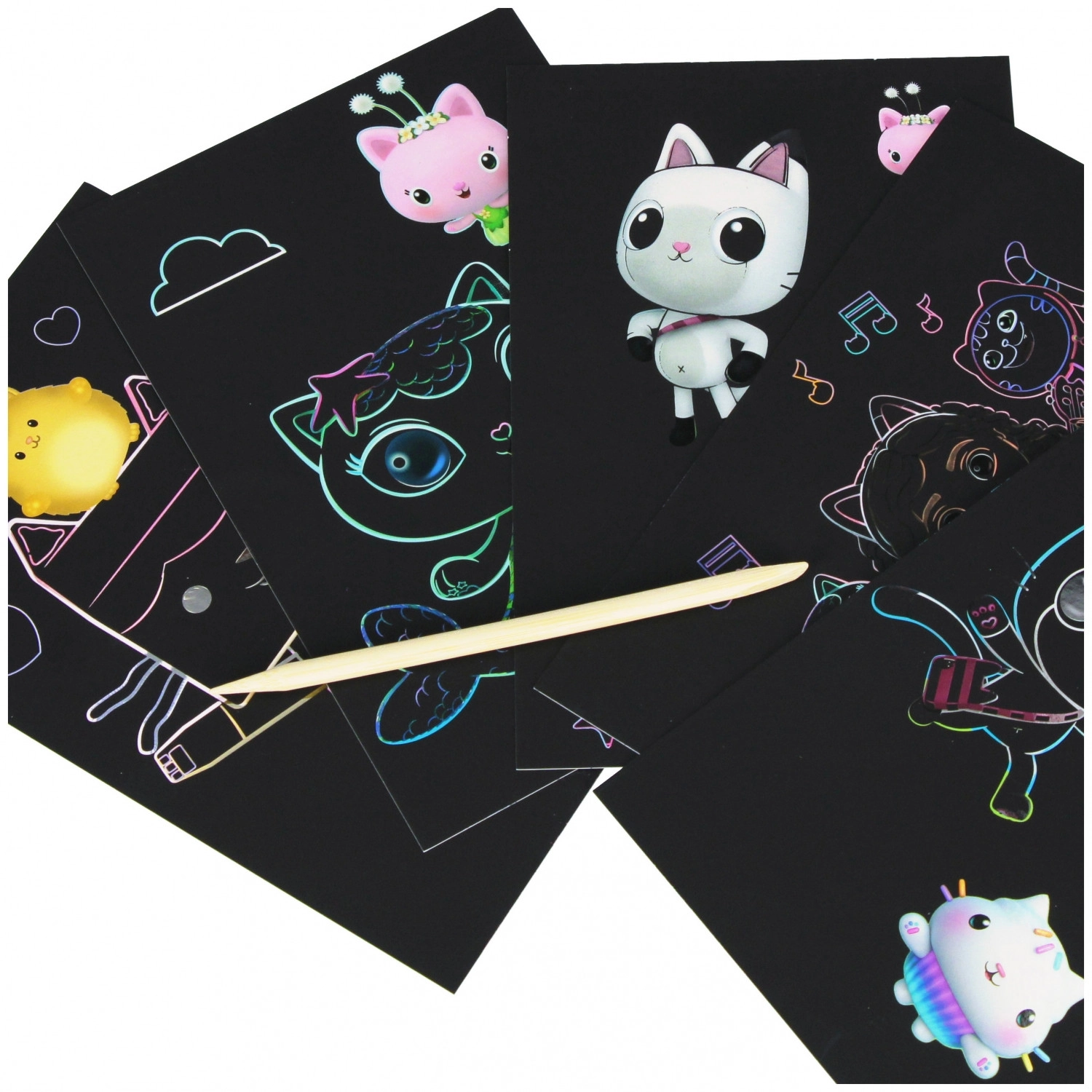 Škrabací set Gabby's House přináší dětem hodiny kreativní zábavy. Pomocí přiloženého stylusu mohou odkrývat barevné vrstvy a vytvářet jedinečné motivy inspirované světem Gabby's House. Díky kompaktním rozměrům je set vhodný na cesty, do školky i na doma.