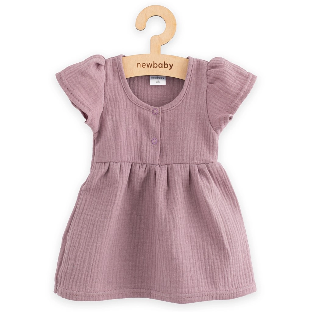 Tyto letní mušelínové šaty New Baby zaujmou jednoduchou elegancí a důrazem na pohodlí. Díky střihu do A a jemně nariasené sukýnce se skvěle nosí a neomezují v pohybu. Přední zapínání výrazně ulehčí oblékání i svlékání.