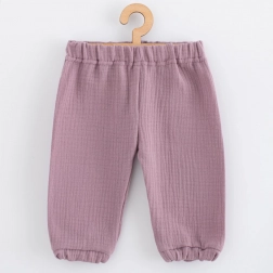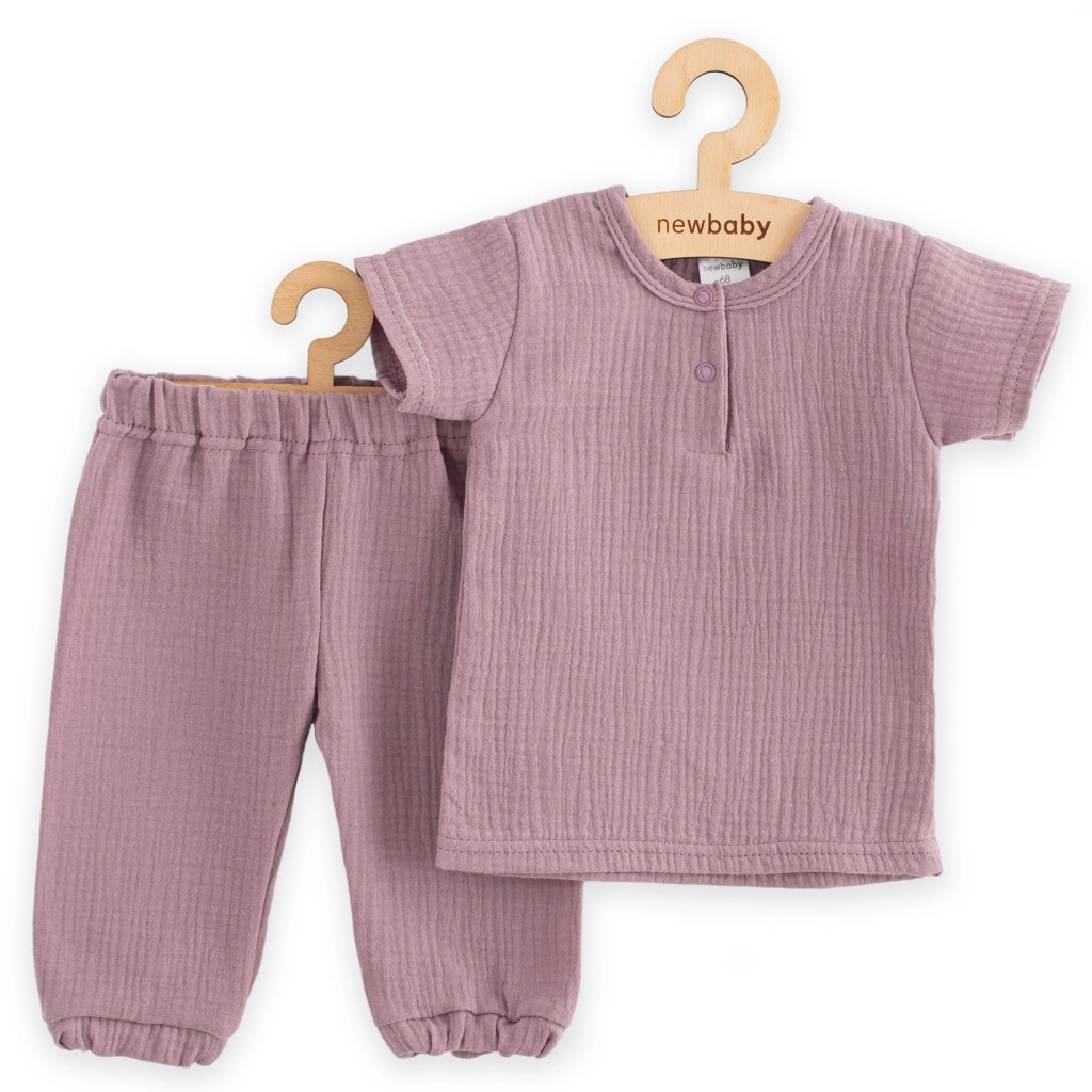 Mušelínová kojenecká souprava kombinuje pohodlí, funkčnost a nadčasový vzhled. Tričko s krátkým rukávem se snadno obléká díky zapínání na cvočky pod krkem, kalhoty mají moderní volnější střih a měkkou gumu, která nikde netlačí. Lehoučký mušelín je ideální pro teplejší počasí, krásně dýchá a je příjemný na pokožce.