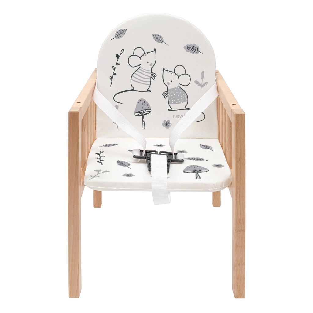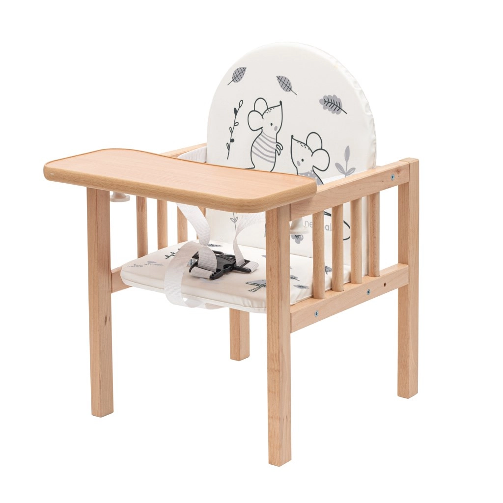 Praktická a bezpečná dětská jídelní židlička 2v1 NEW BABY Jerry z pevného bukového dřeva. Nabízí možnost přeměny na samostatný stoleček a židličku, má pohodlné polstrování s dětskými motivy a snadno omyvatelný tác. O bezpečí se starají 3bodové bezpečnostní pásy a stabilní konstrukce s dlouhou životností. Ideální pro krmení, hraní i kreslení.