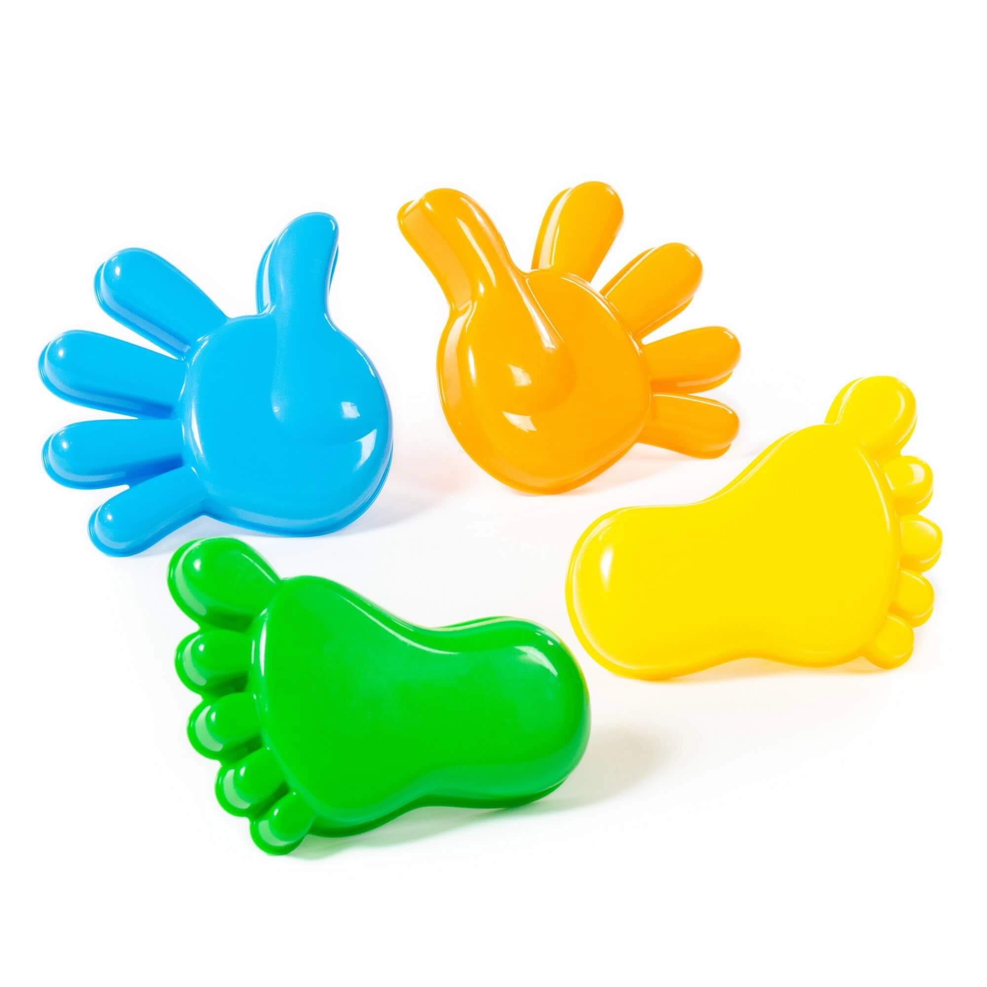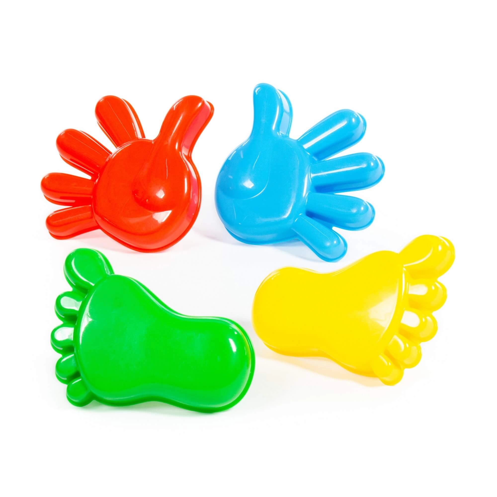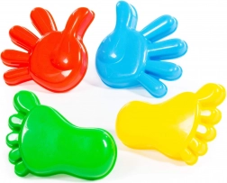 Objevte barevnou sadu formiček do písku pro děti – ruce a nohy. Čtyři pevné plastové dílky vytvářejí výrazné otisky prstů a prstů na nohou, podporují dětskou kreativitu a jemnou motoriku. Formičky jsou lehké, pohodlně se drží a díky hladkým hranám jsou šetrné k dětským rukám.