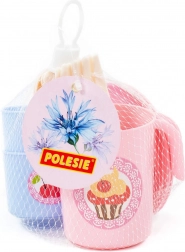 - 1× konvička s víčkem, 2× hrnek, 2× talířek, 2× nůž, 2× vidlička, 2× lžíce