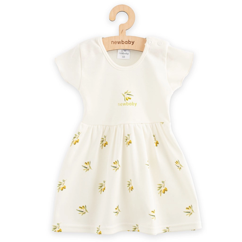 Stylové šatičky pro malé parádnice z kolekce New Baby Olivy potěší jemně řasenou sukýnkou a hravým potiskem oliv. Díky přírodnímu materiálu jsou šaty měkké, prodyšné a šetrné k pokožce, ideální pro každodenní nošení.