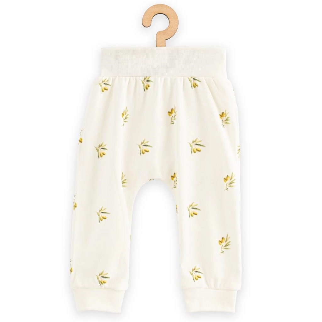 Jemné a pohodlné dětské kalhoty z organické bavlny NEW BABY s celoplošným potiskem oliv jsou ideální pro každodenní nošení. Širší lem v pase i na nohavicích zajistí, že kalhoty dobře drží a netlačí. Díky měkkému, prodyšnému a kvalitnímu materiálu se miminko bude cítit skvěle po celý den.