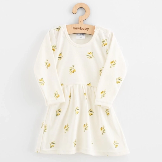 Stylové a pohodlné dojčenské šatičky New Baby Olivy jsou ideální pro každodenní nošení i slavnostní chvíle. Díky měkké organické (bio) bavlně jsou šaty příjemné na těle, skvěle dýchají a nedráždí pokožku. Jemně řasená sukýnka a hravý potisk oliv dodávají modelu něžný vzhled.
