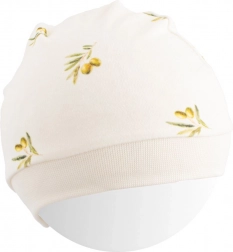 Stylová a jemná dětská čepice New Baby Olivy je vyrobena ze 100% organické bavlny, která je mimořádně příjemná na dotek, dobře dýchá a je ideální pro každodenní nošení. Potisk s olivami dodává hravý vzhled, zatímco širší lem zajišťuje pohodlí bez nepříjemného tlaku na hlavičku.